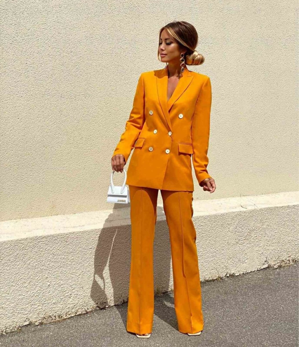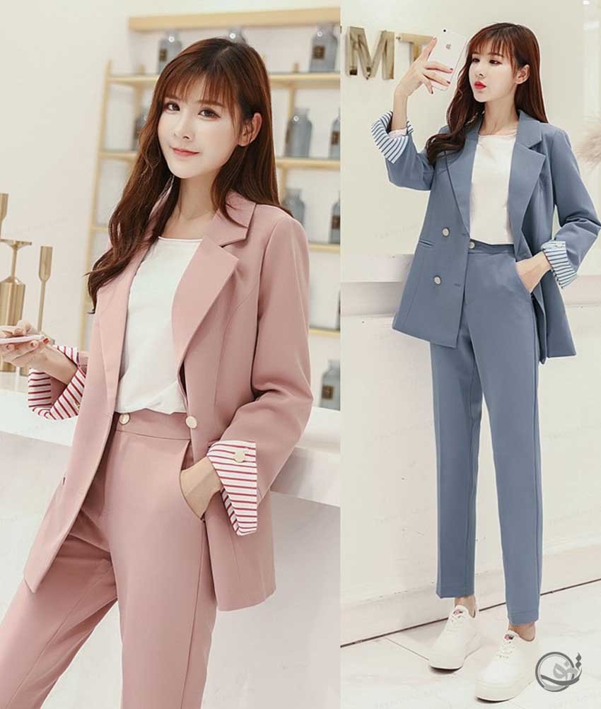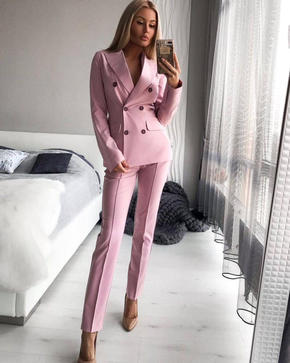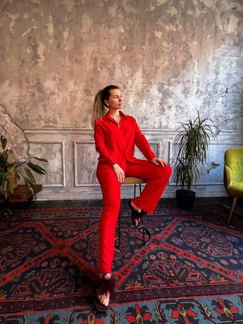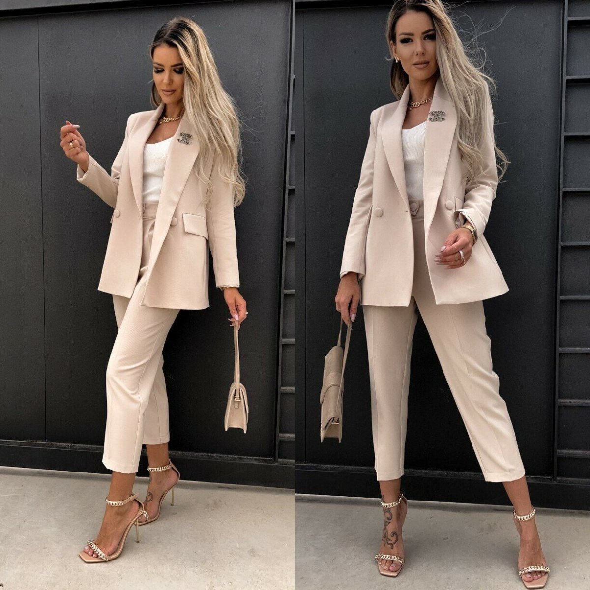 Показ мод женский брючный костюм с ассиметричным пиджаком