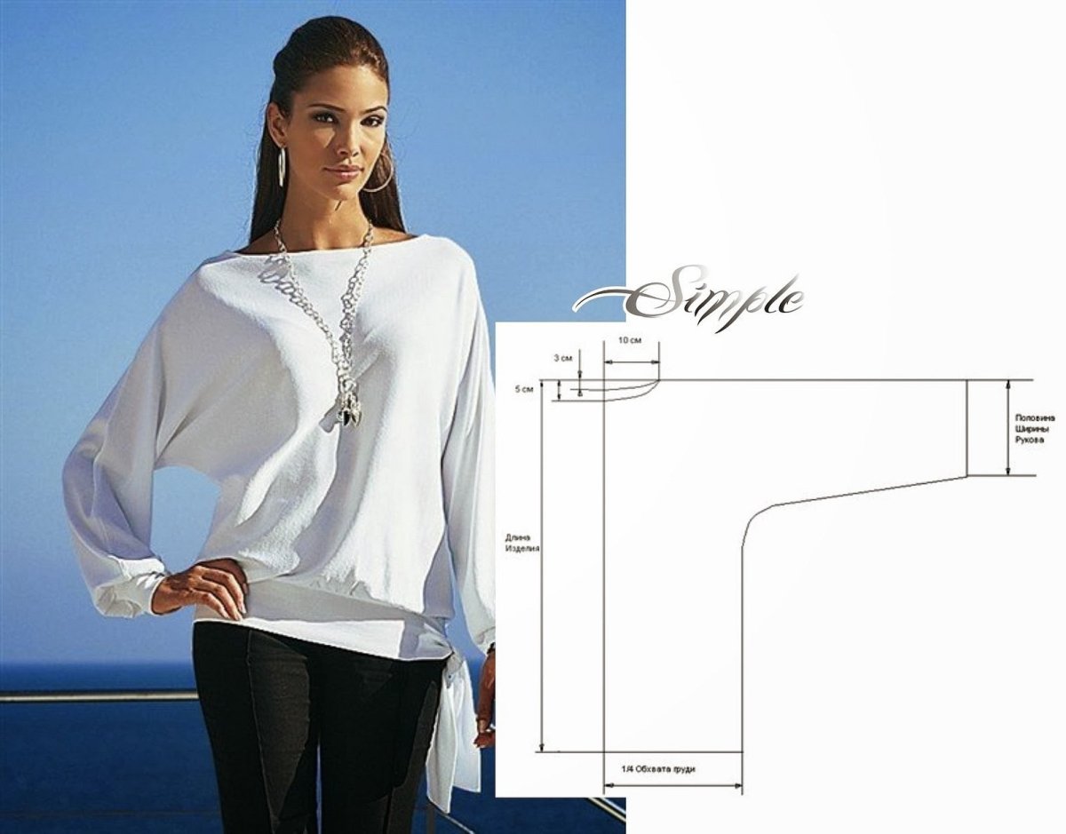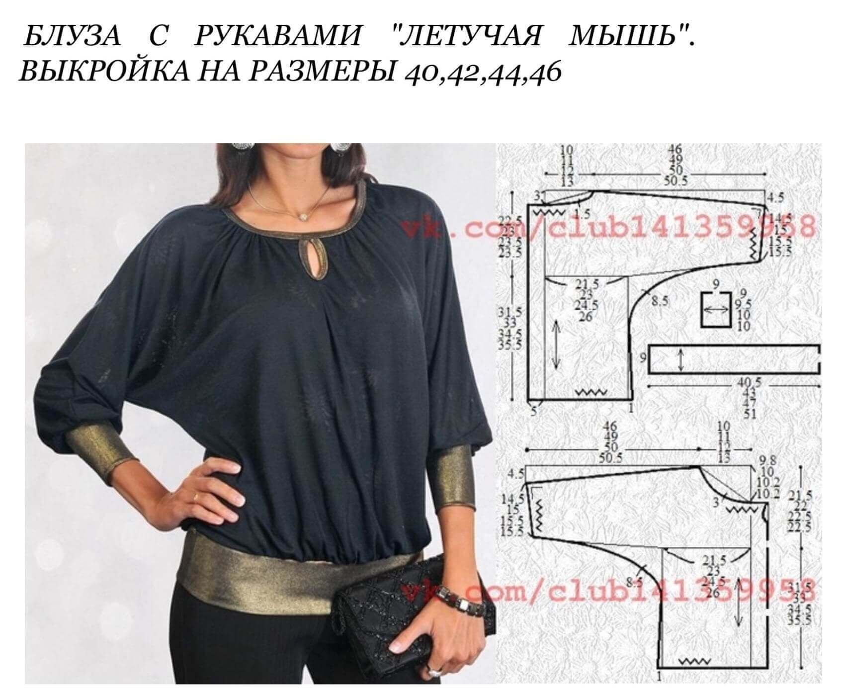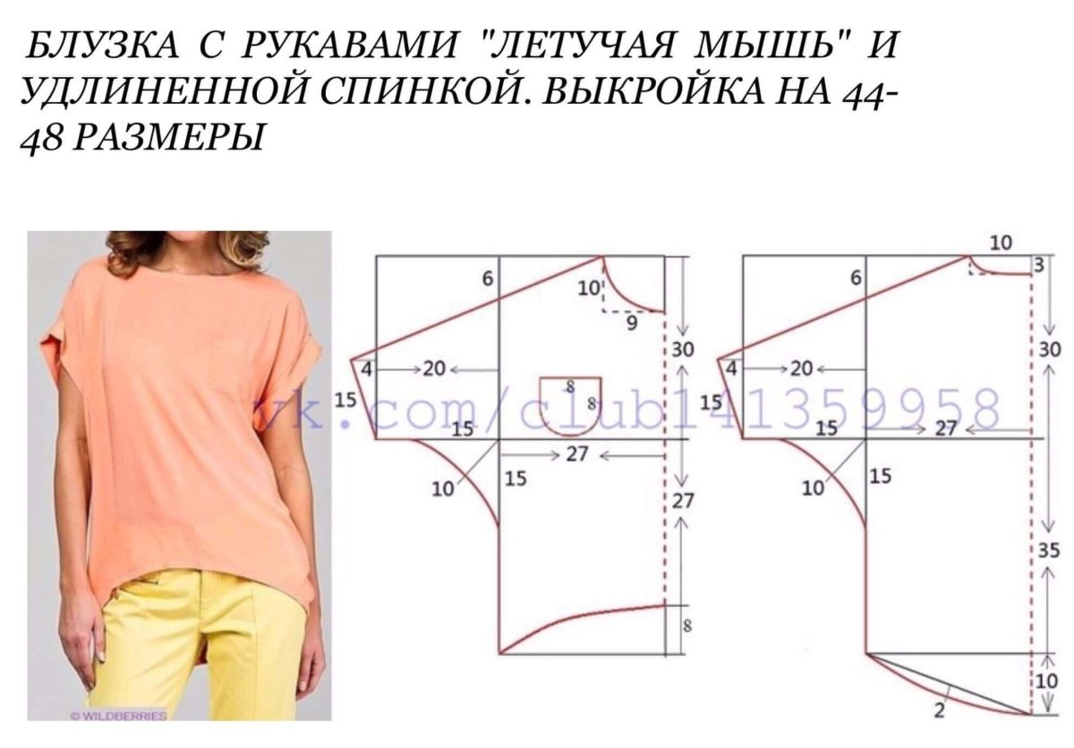 Выкройка кофты летучая мышь из трикотажа 50 размера