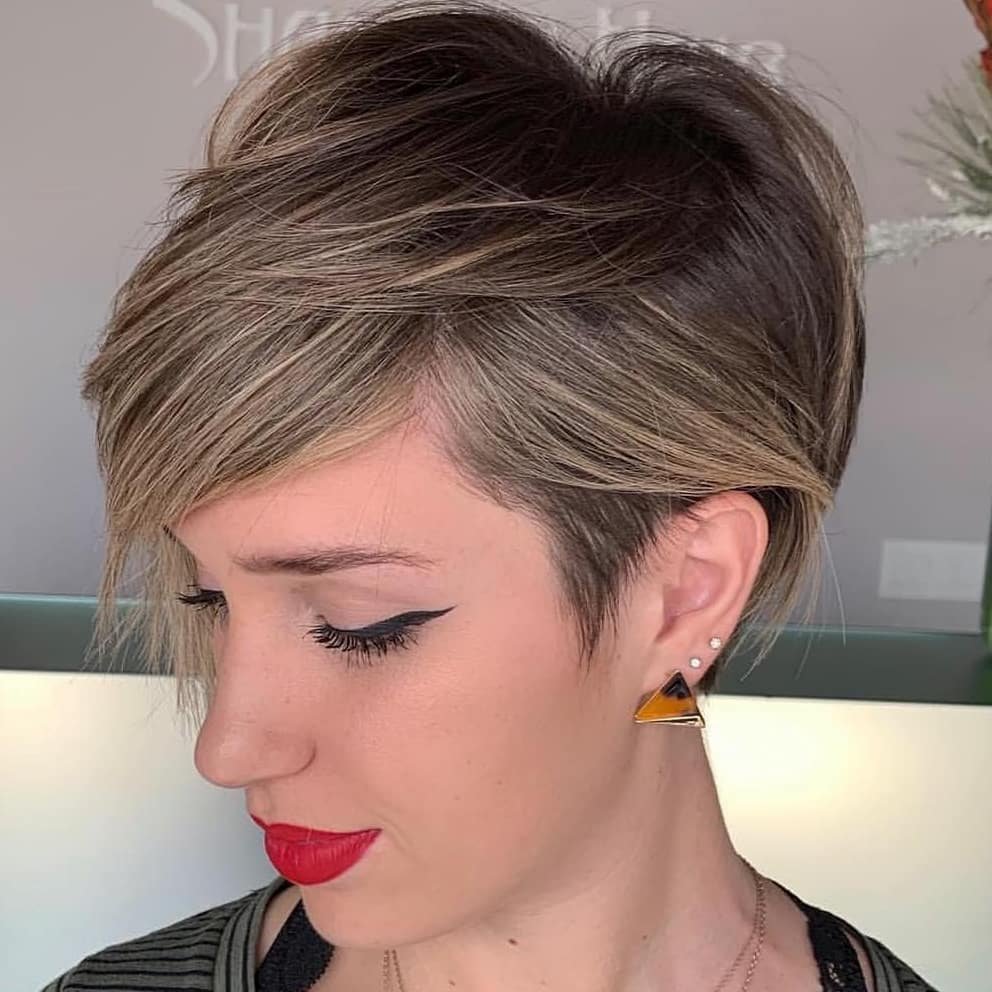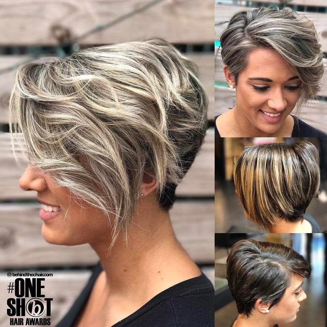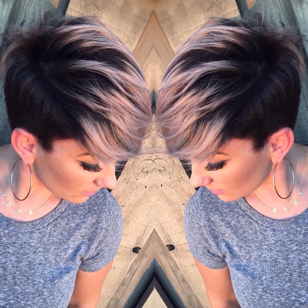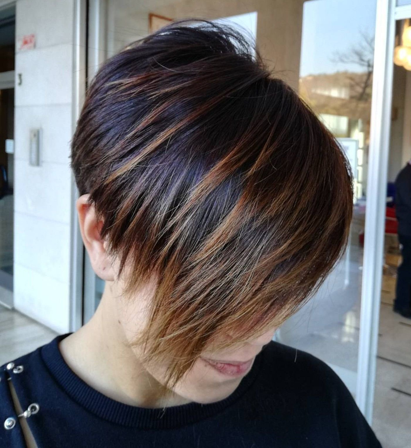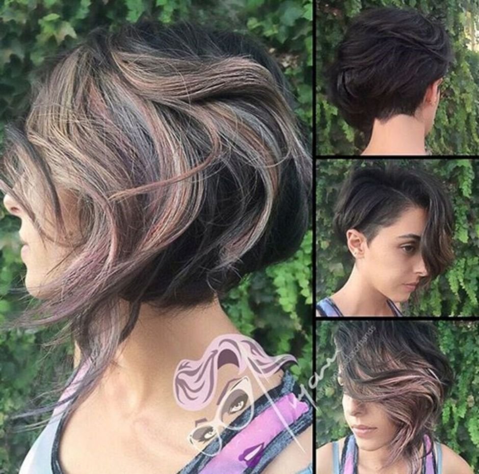 Стрижка Пикси-Боб на средние волосы мелирование на темные