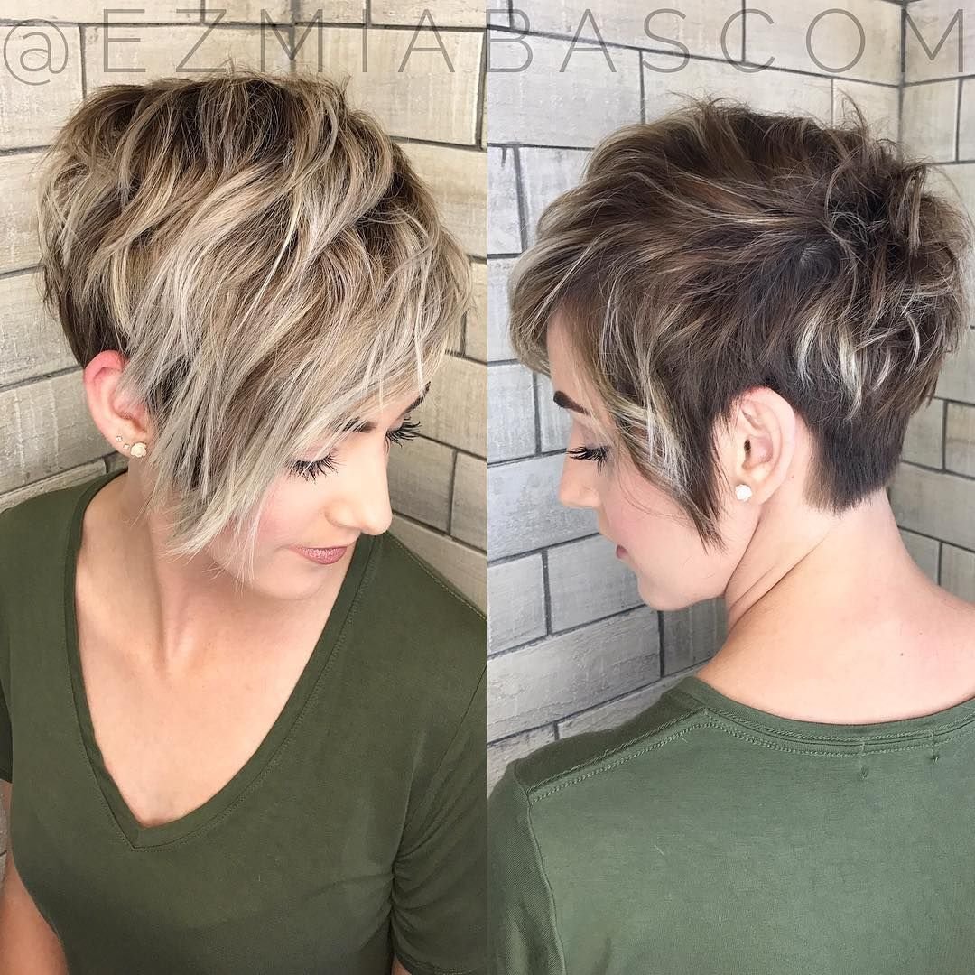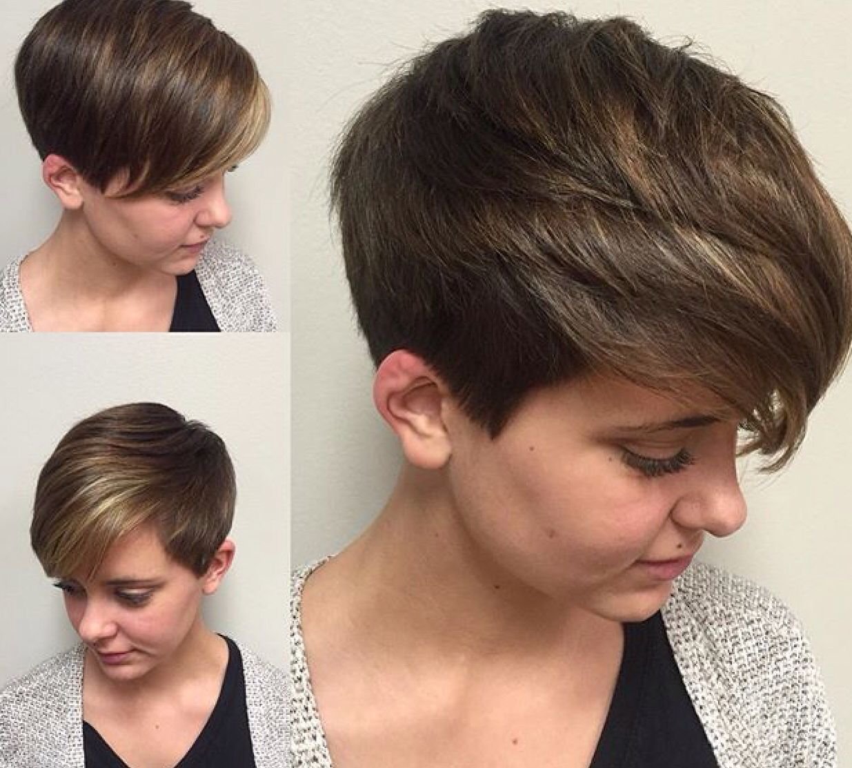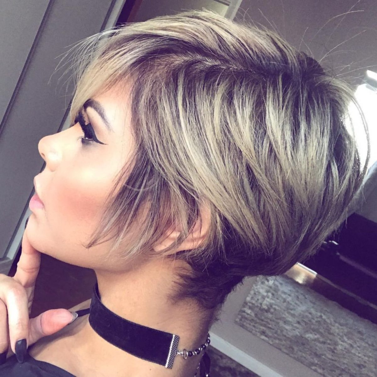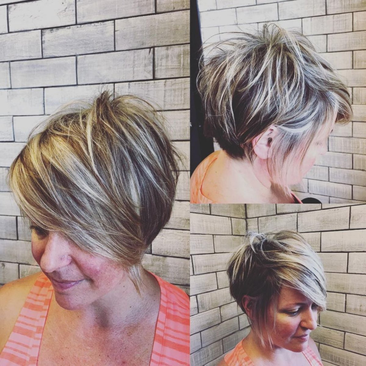 Стрижка Пикси-Боб на средние волосы мелирование на темные