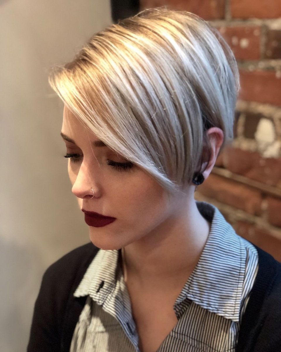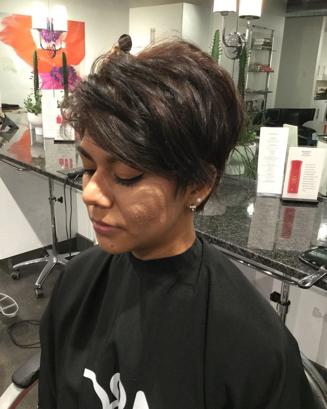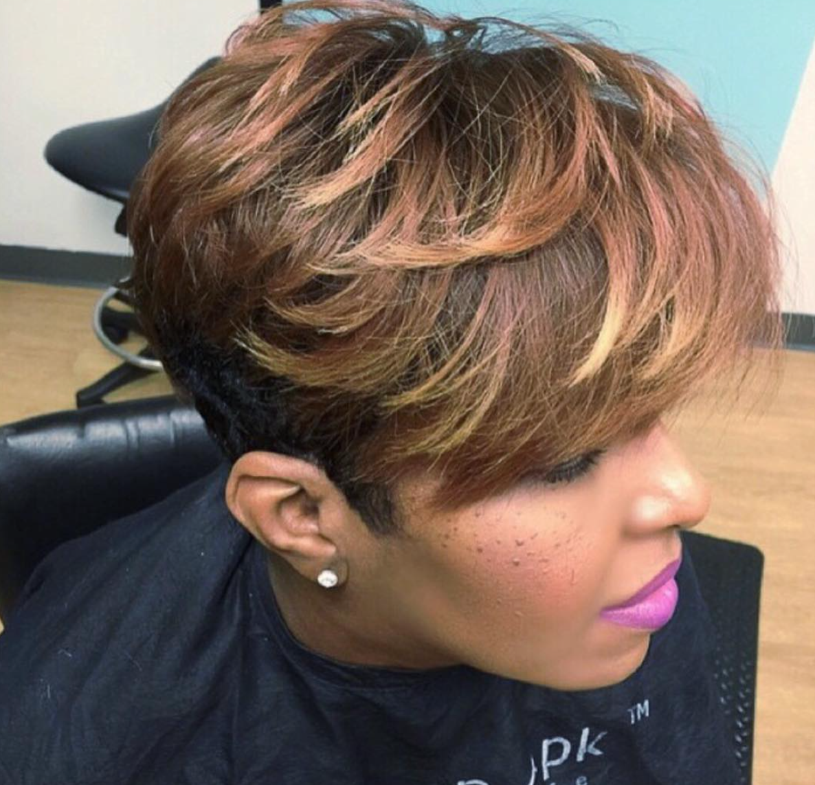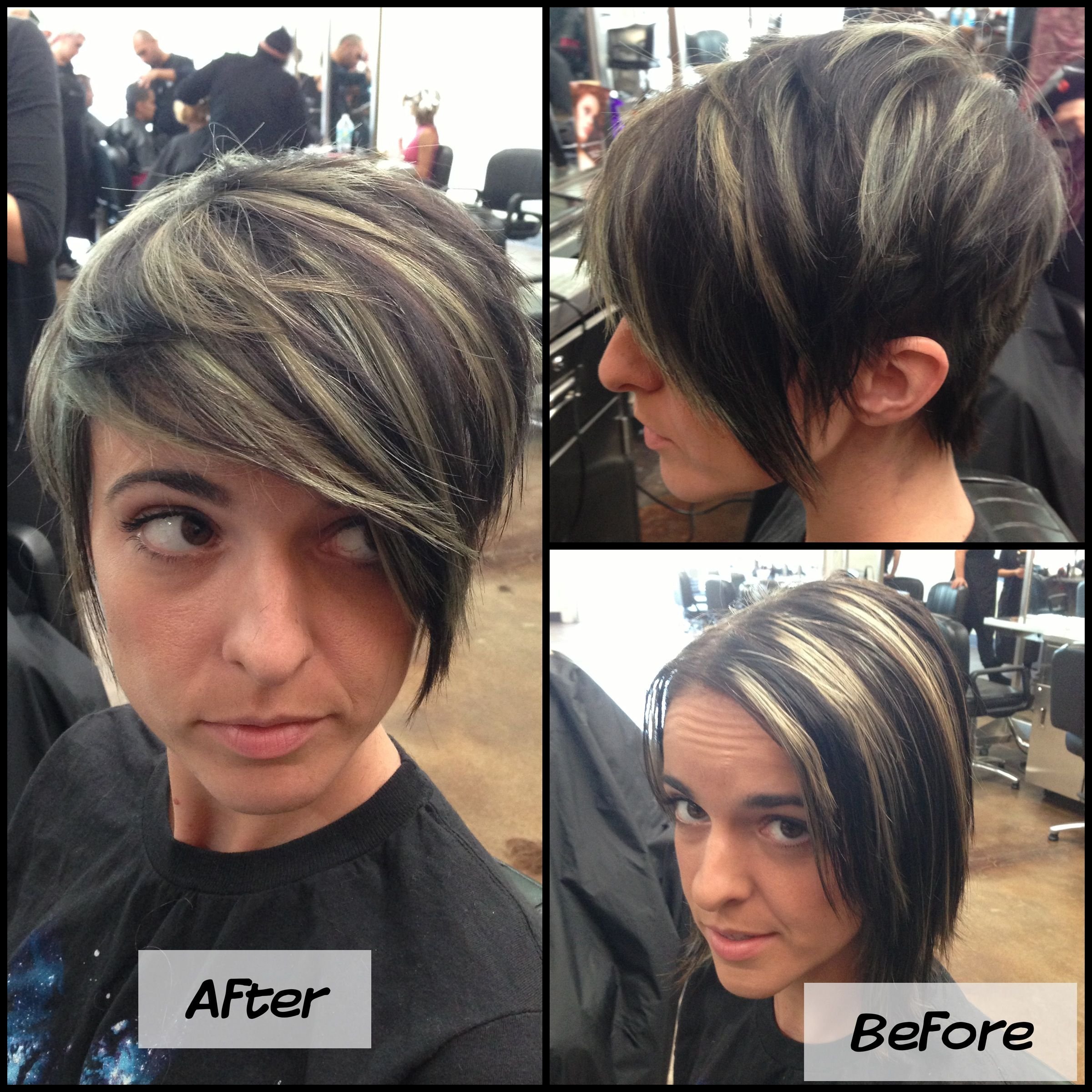 Стрижка Пикси-Боб на средние волосы мелирование на темные