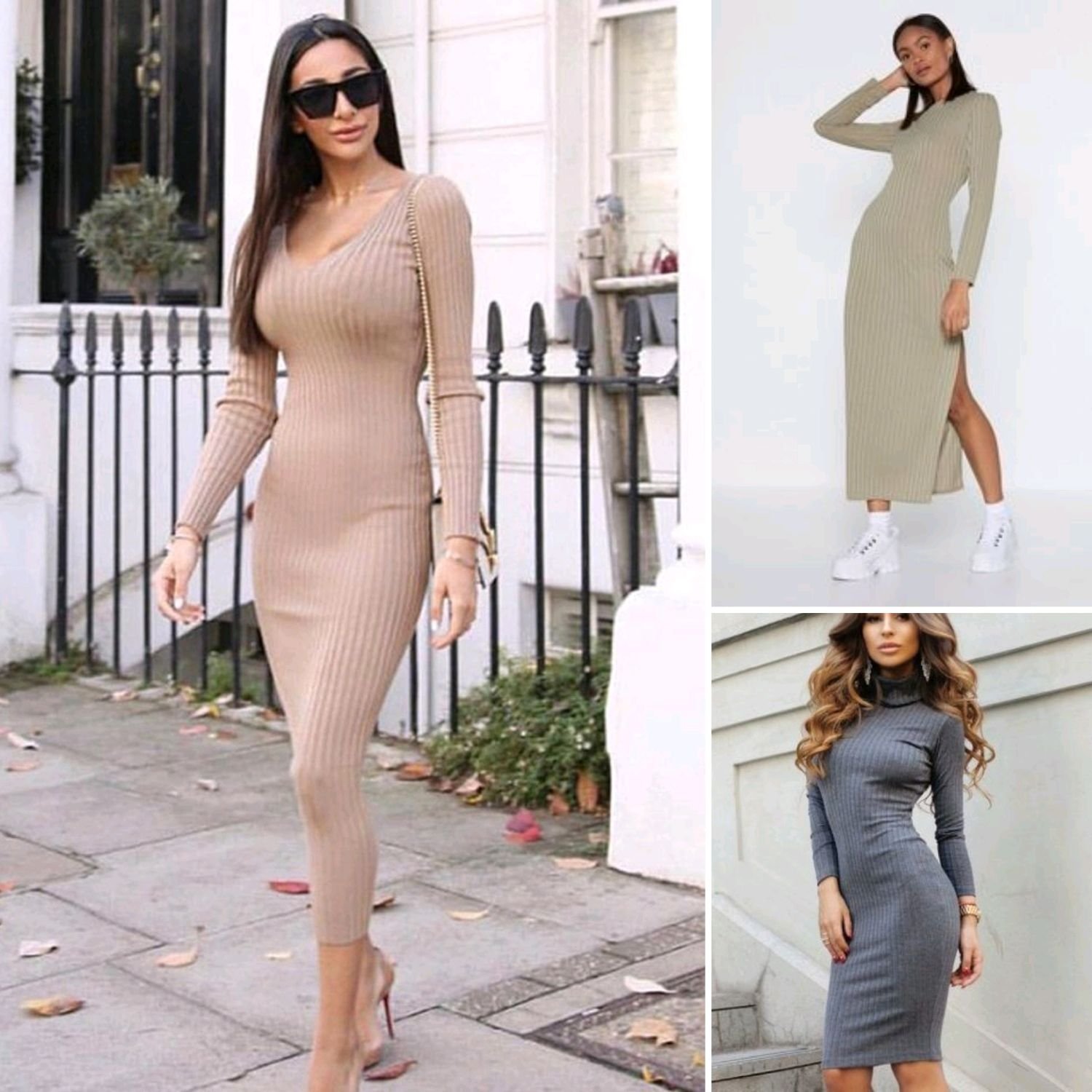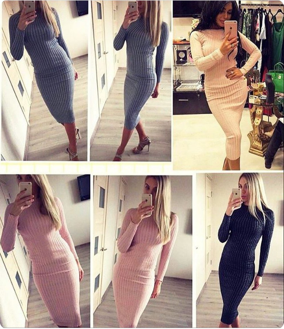 Women Knitted Cotton skinny Sweater Dress v-Neck Slim Bodycon Dress Elegant Pink sexy Party Dress Fit 45-70kg