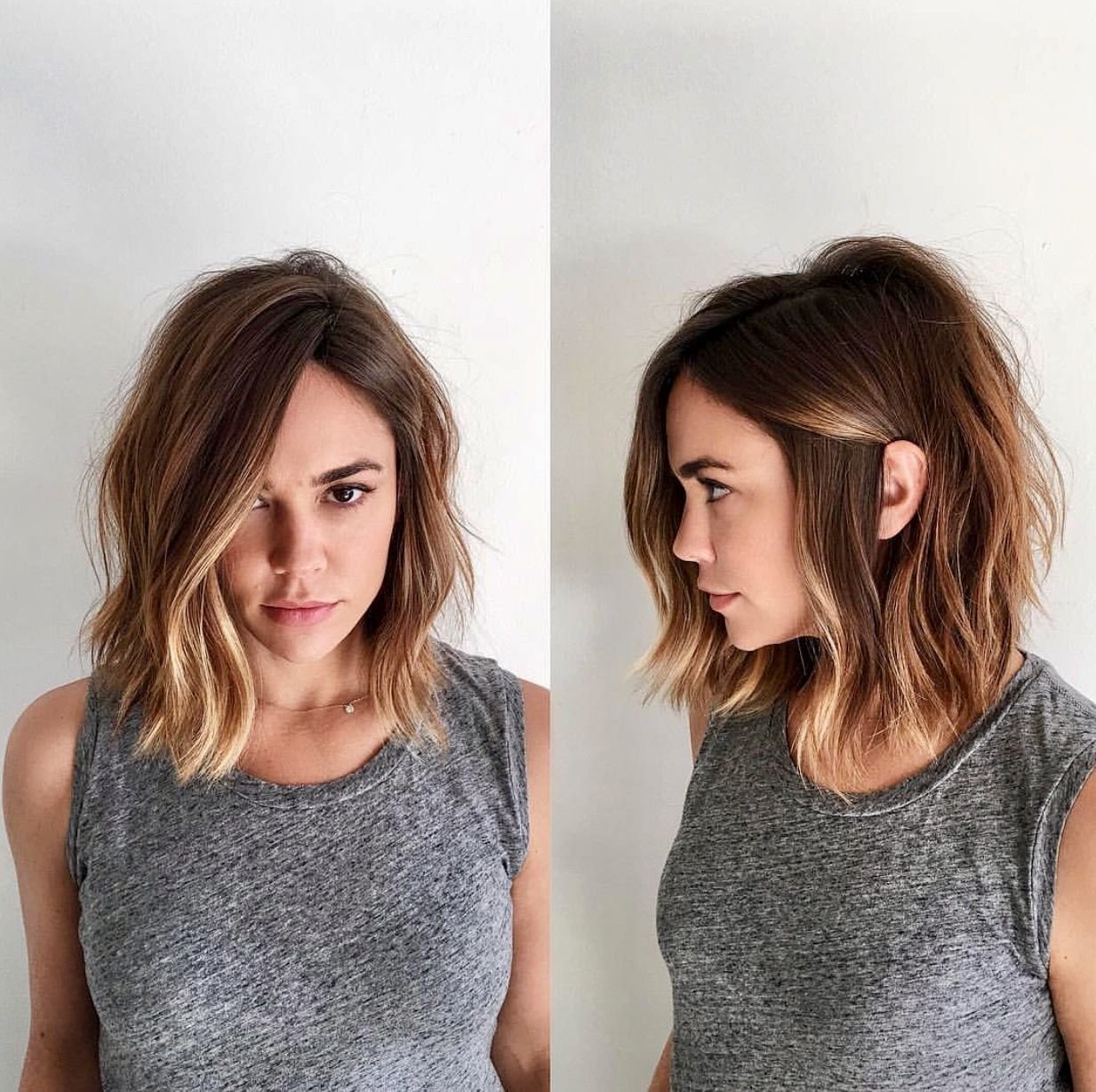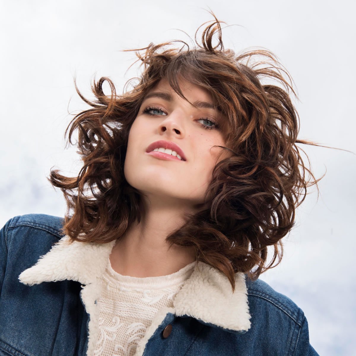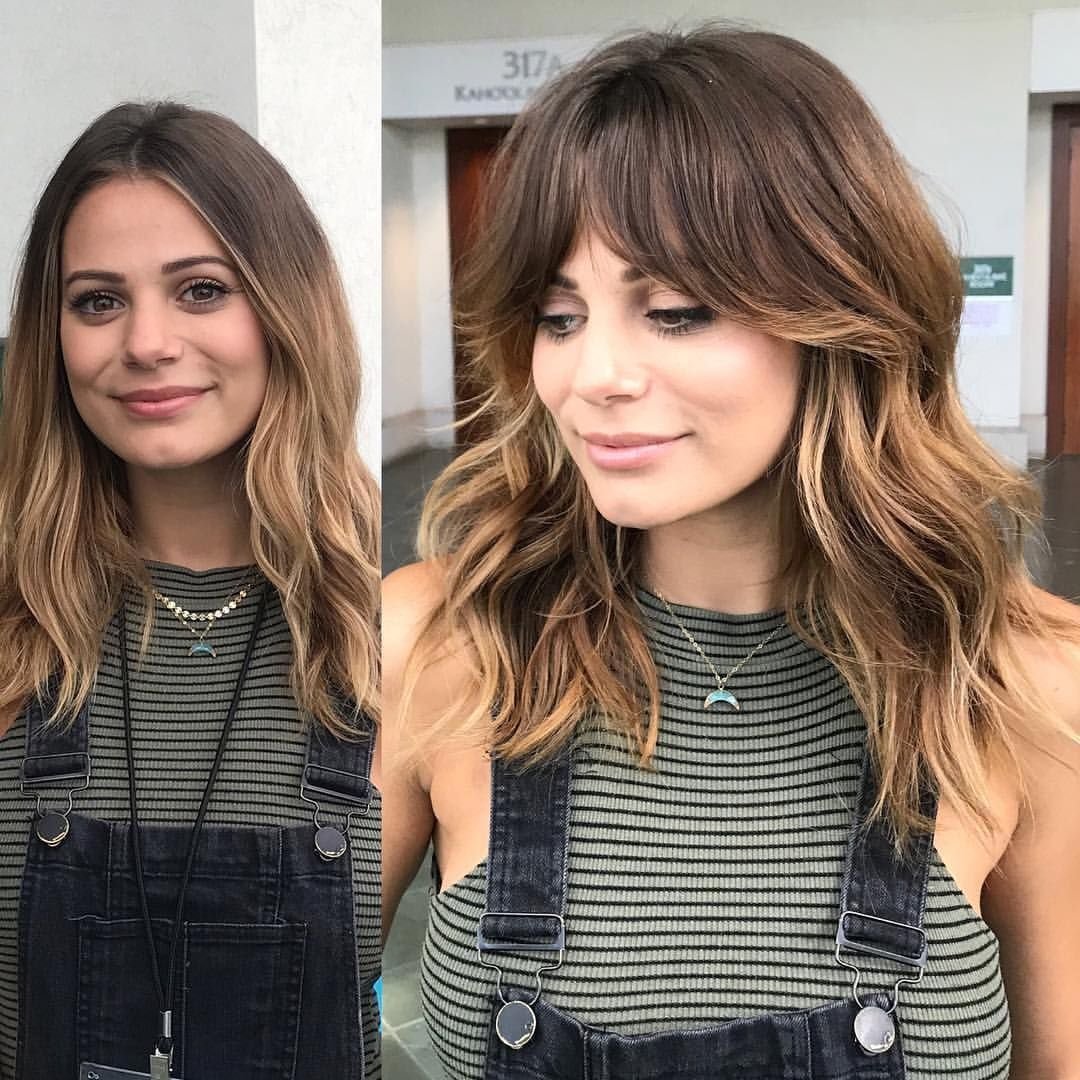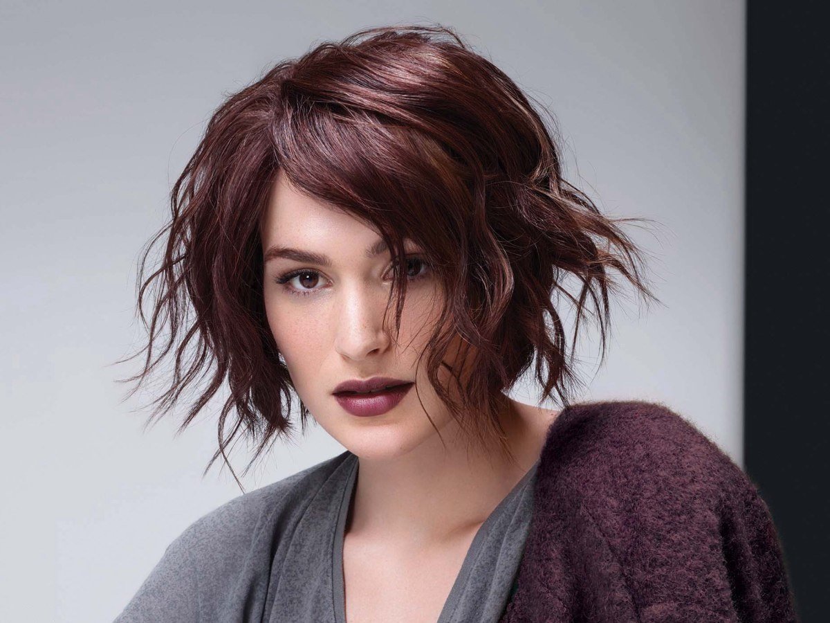 Стрижка Каскад на средние волосы с челкой 2022 на волнистые волосы
