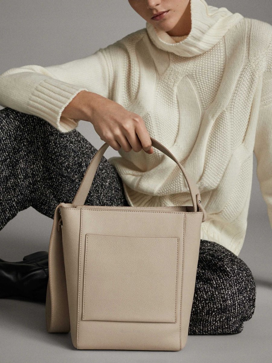 Кожаная сумка с плечевым ремнем для женщин Массимо дутти бежевая