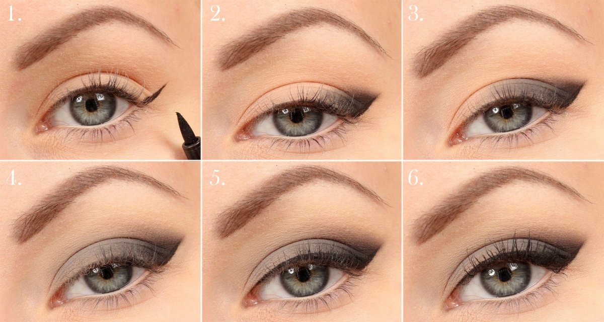 Нюдовый макияж для серо-голубых глаз с нависшим веком