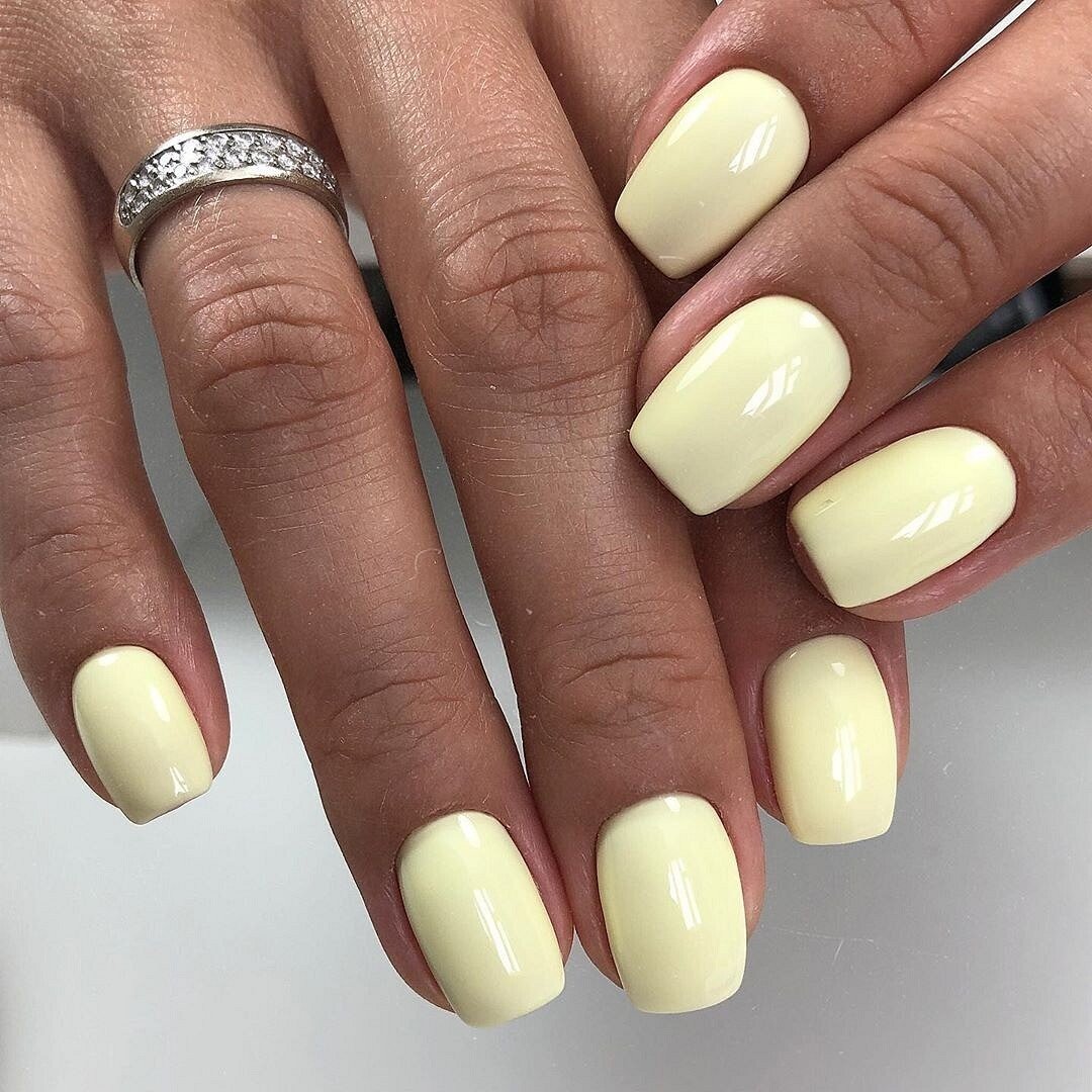 Светло желтый маникюр