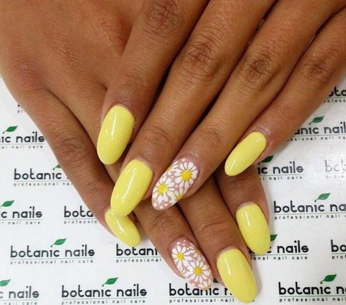 Жёлтый маникюр с ромашками