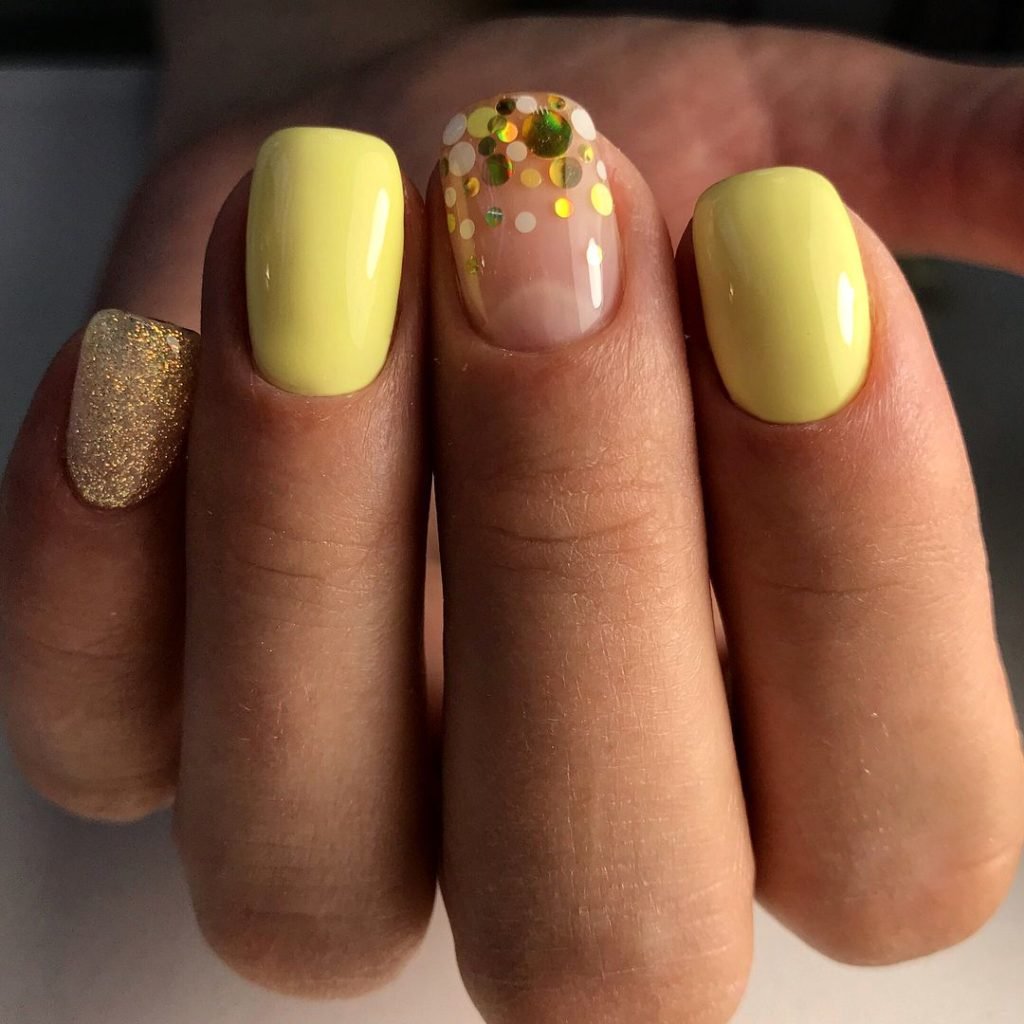 Маникюр на короткие ногти в желтых тонах