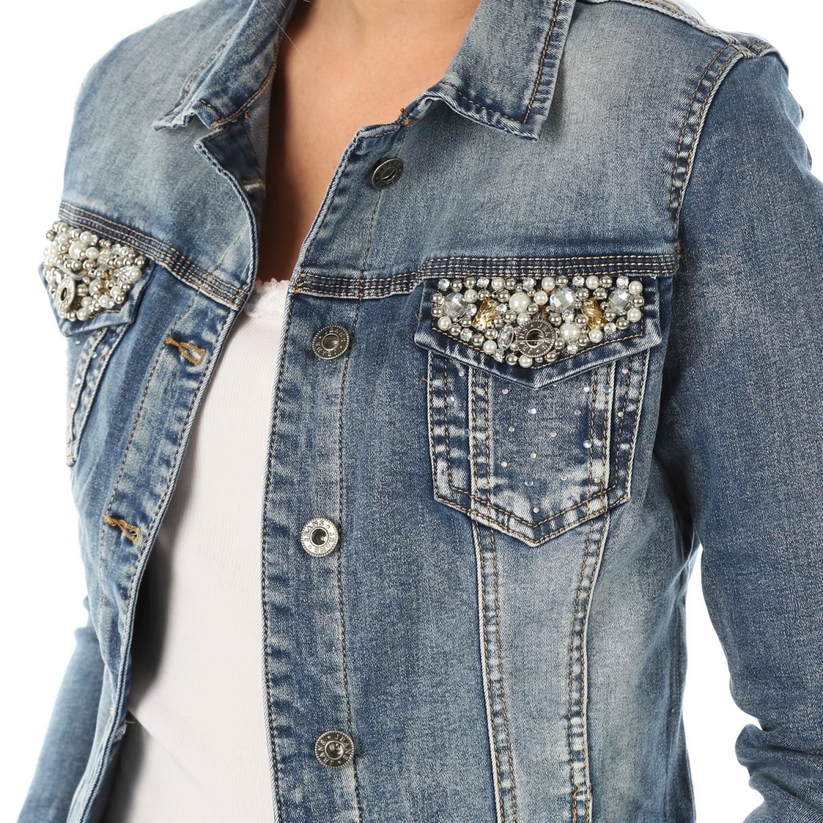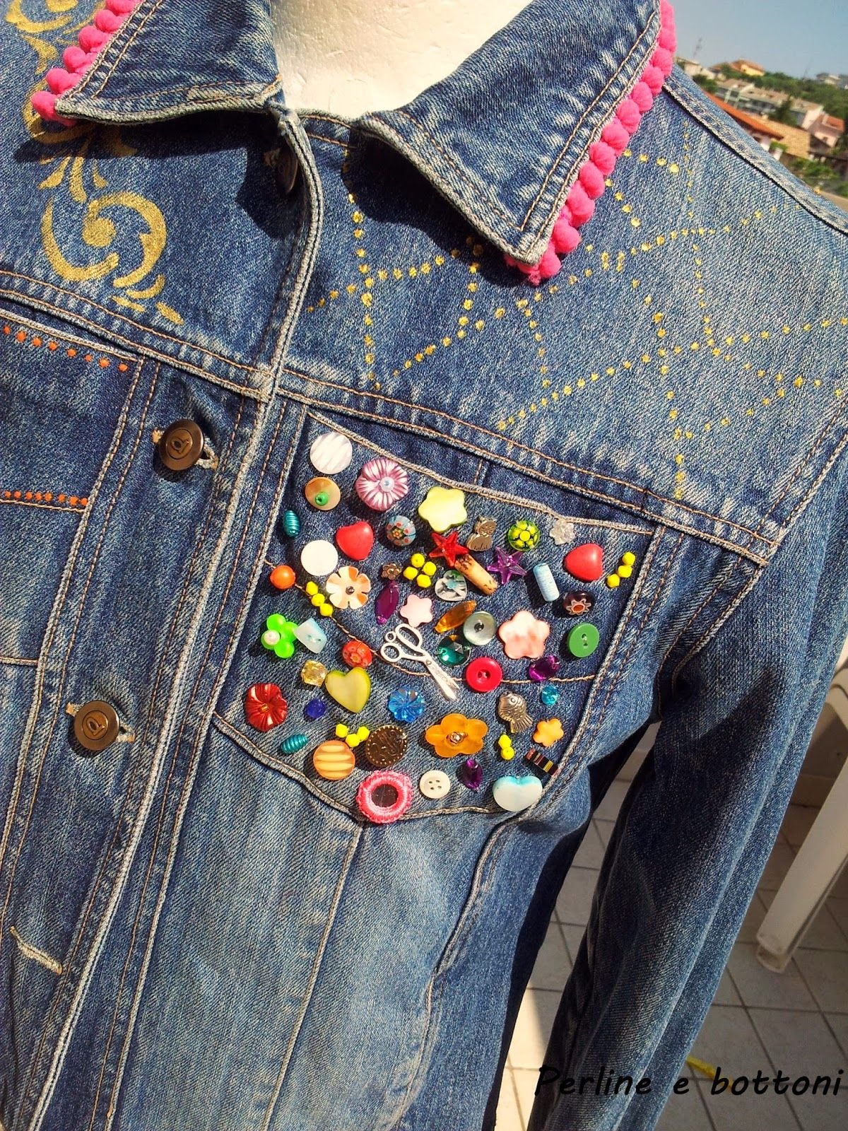 Декор джинсовки бусинами
