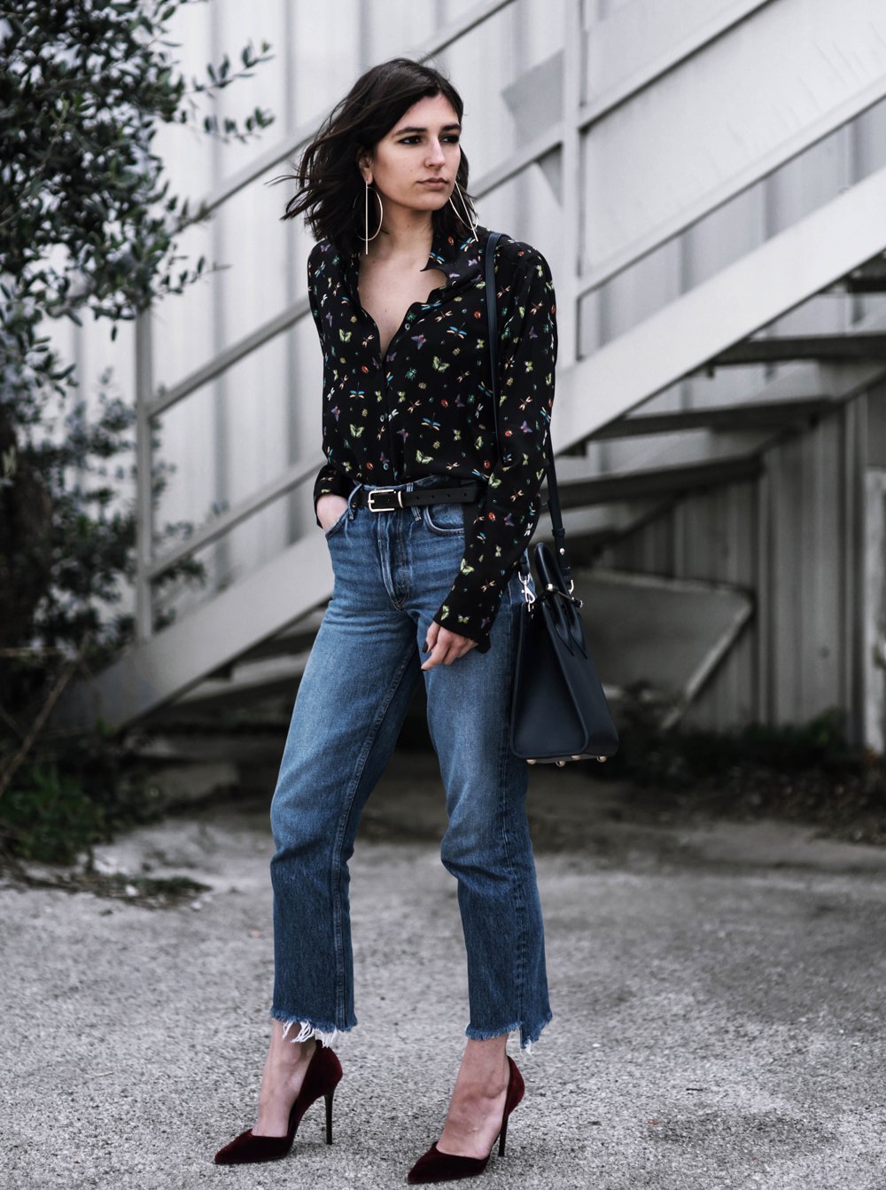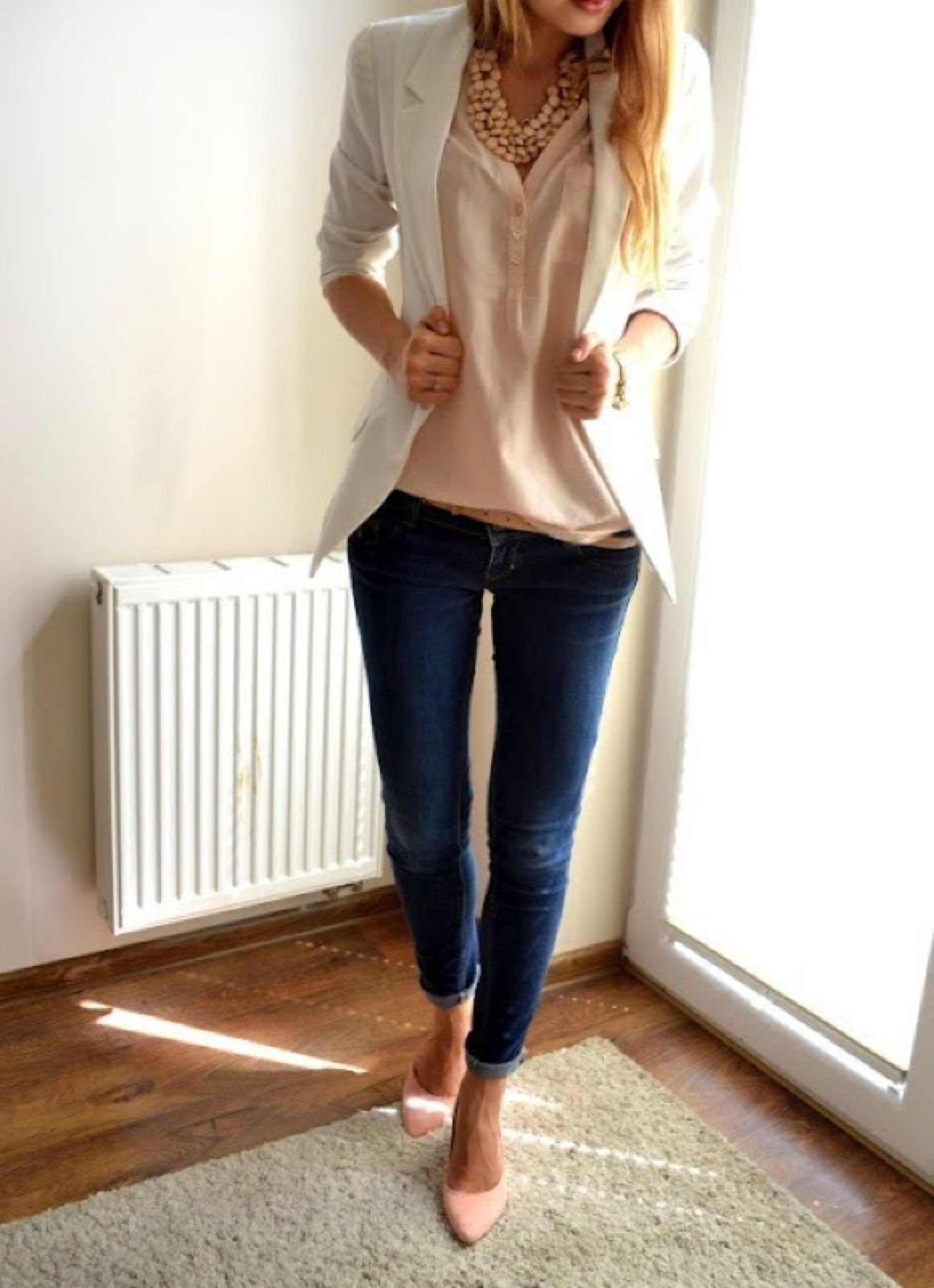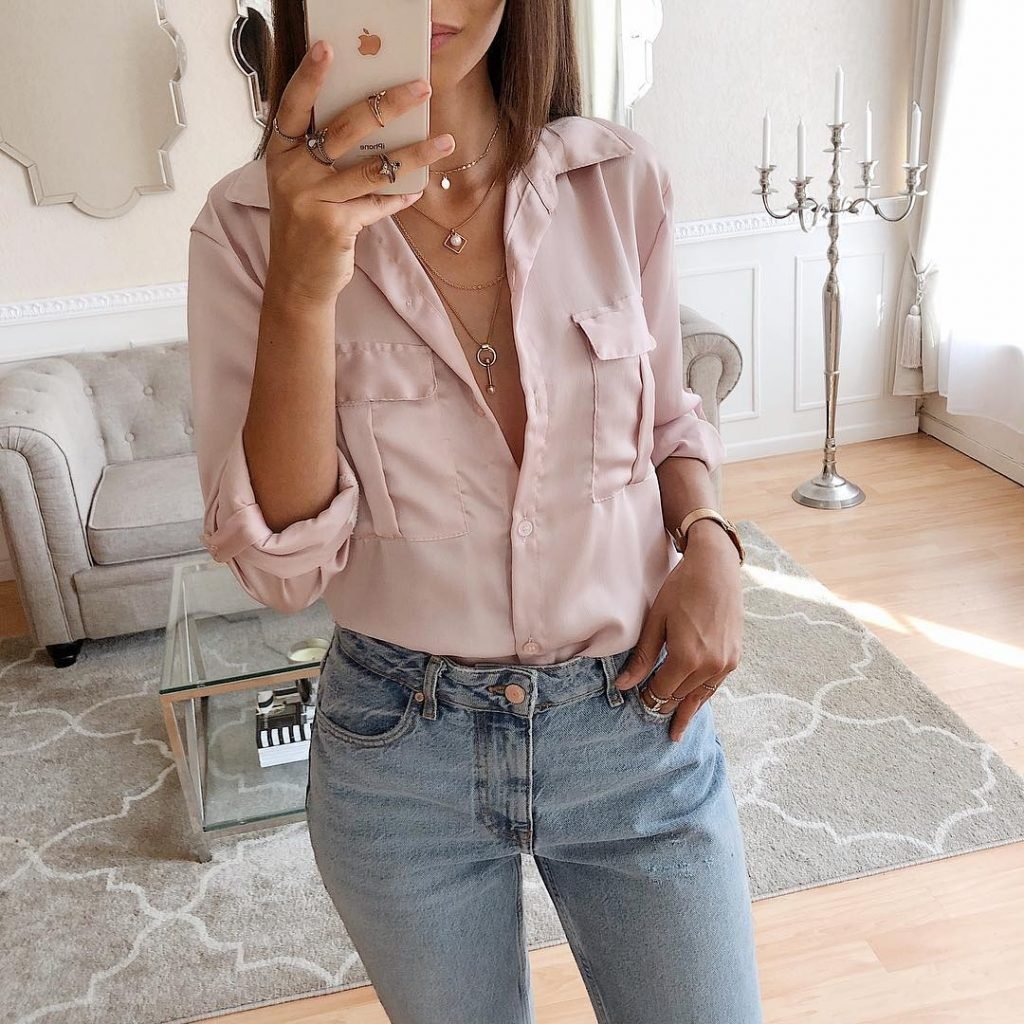 Джинсы с шелковой блузкой