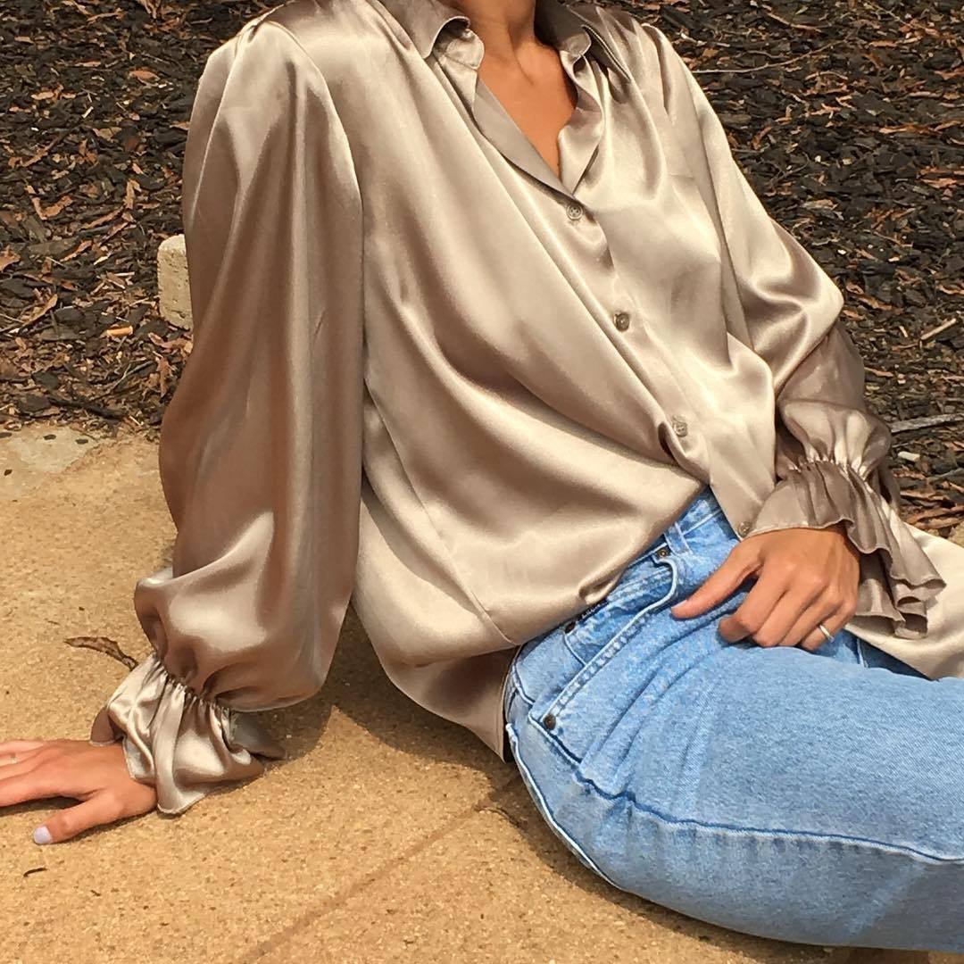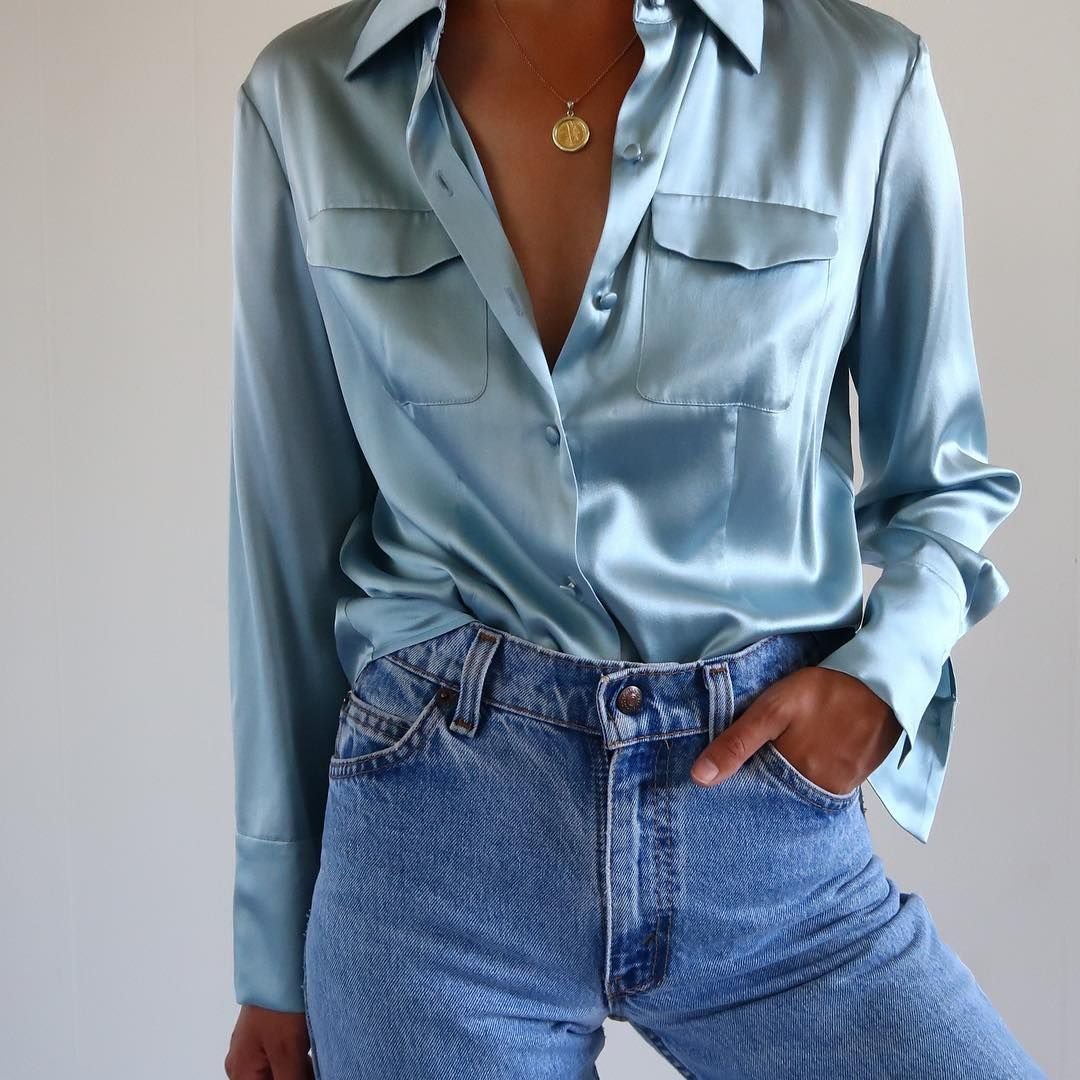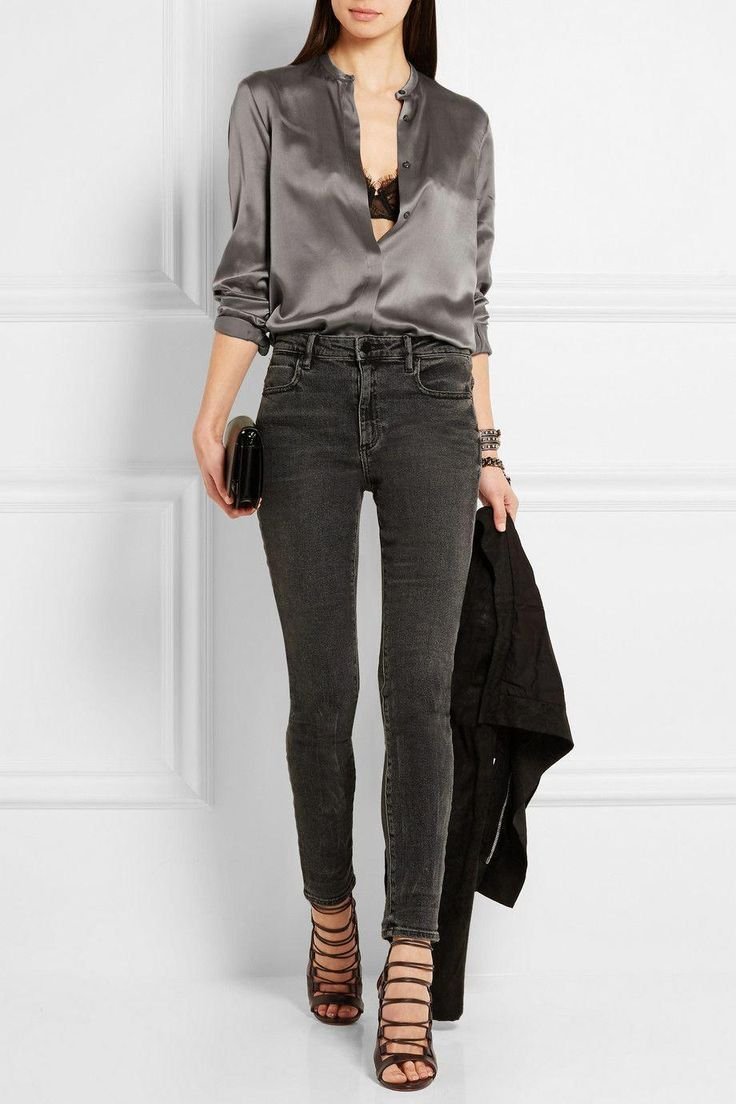Джинсы с атласной рубашкой