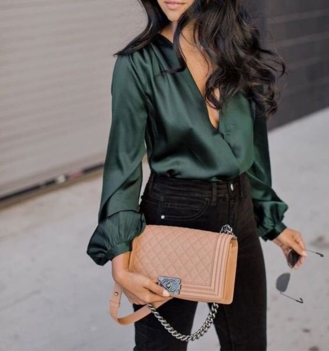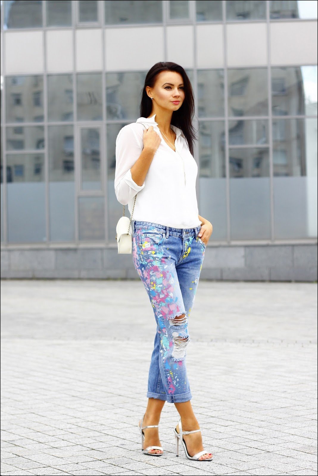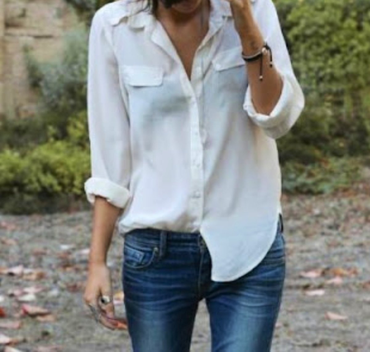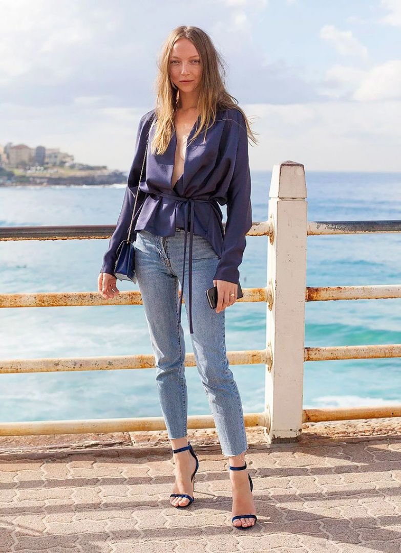 Шелковая блузка с джинсами
