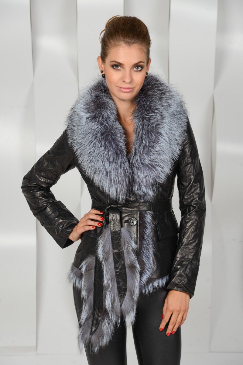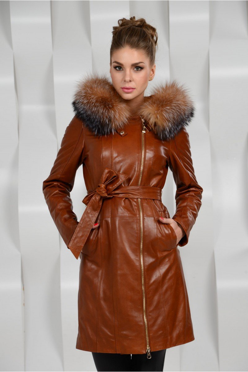 Кожаная плащ с мехом в шансе