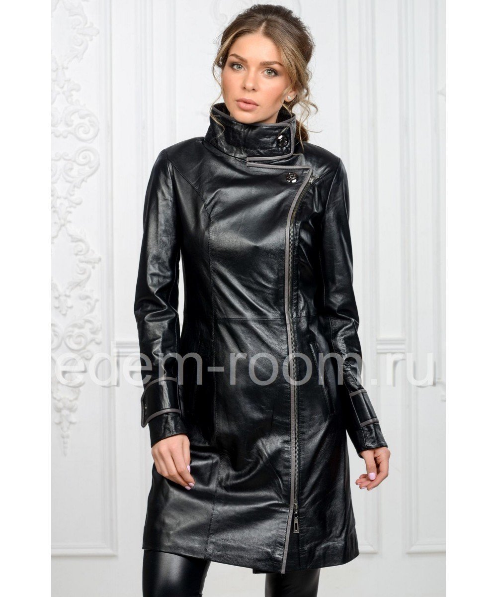 Длинная кожаная куртка женская