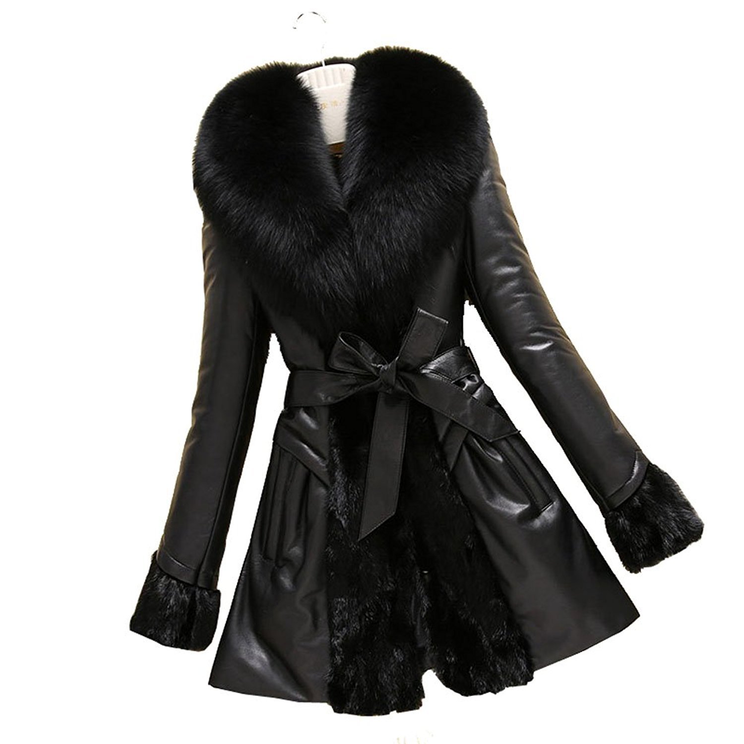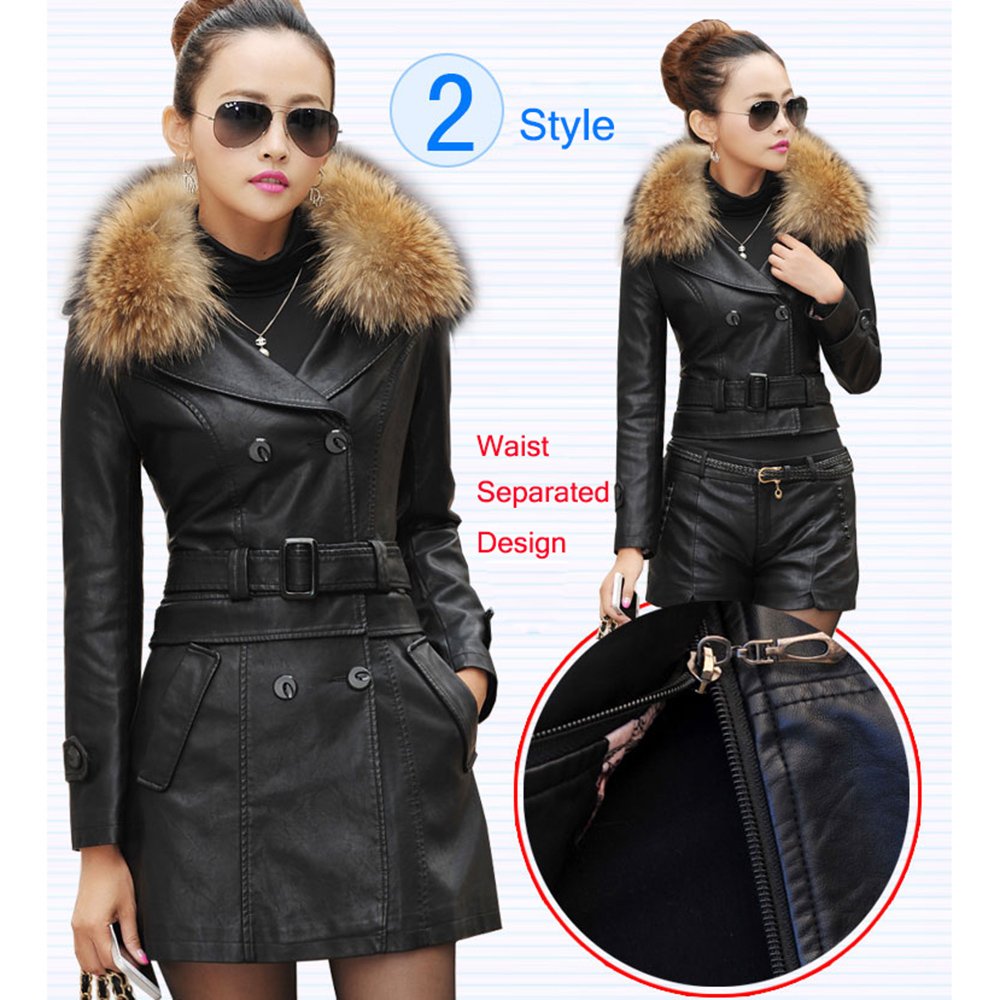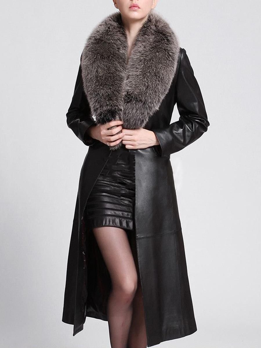 Long Leather Coat Coat fur Brown women