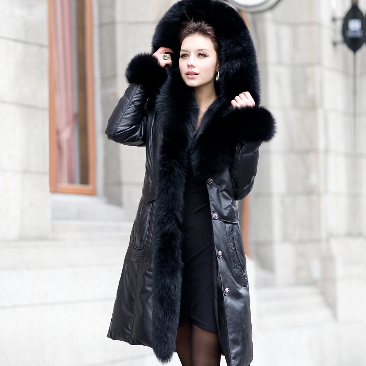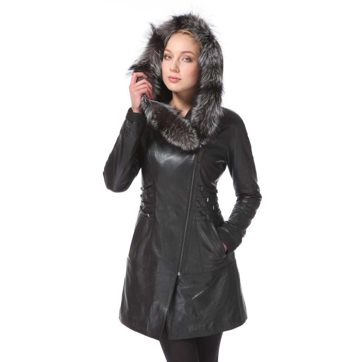 Кожаные зимние изделия длинные с капюшоном на Озоне для женщин