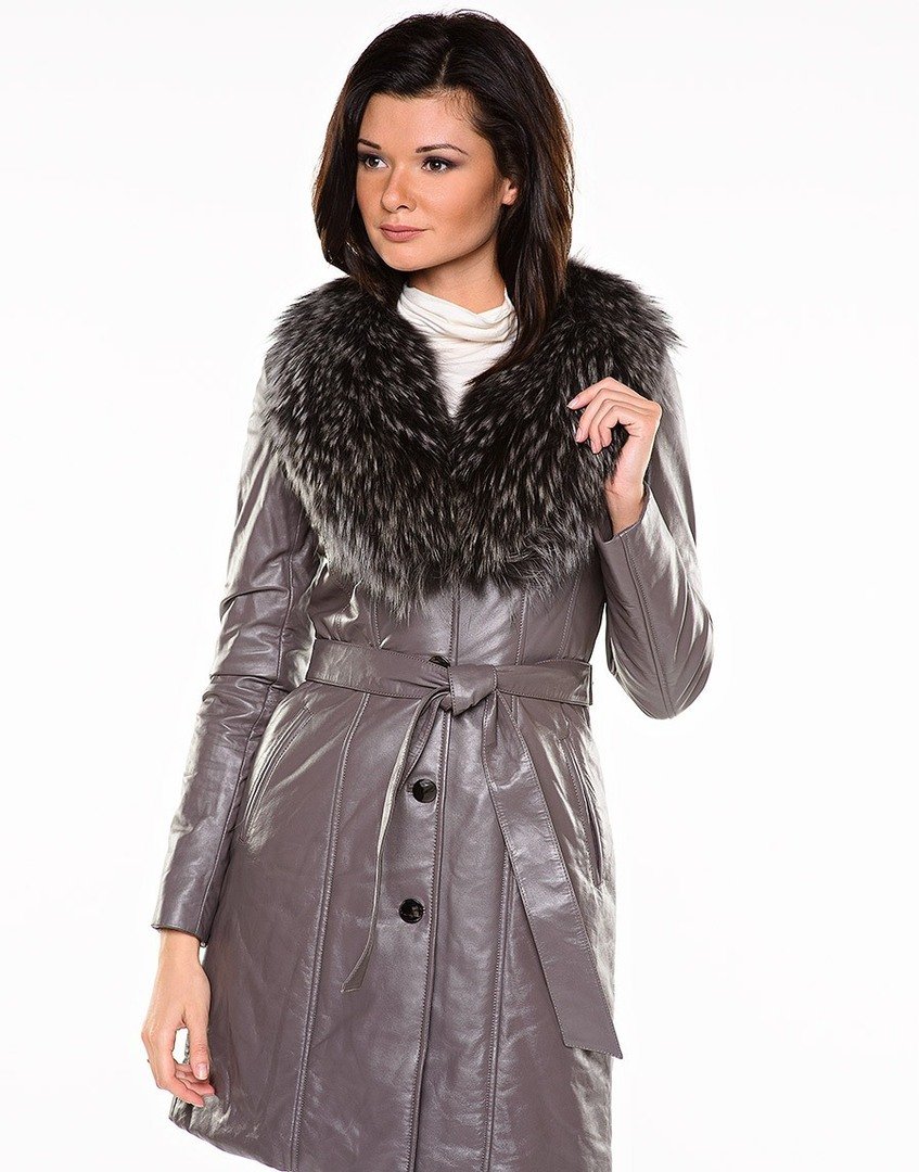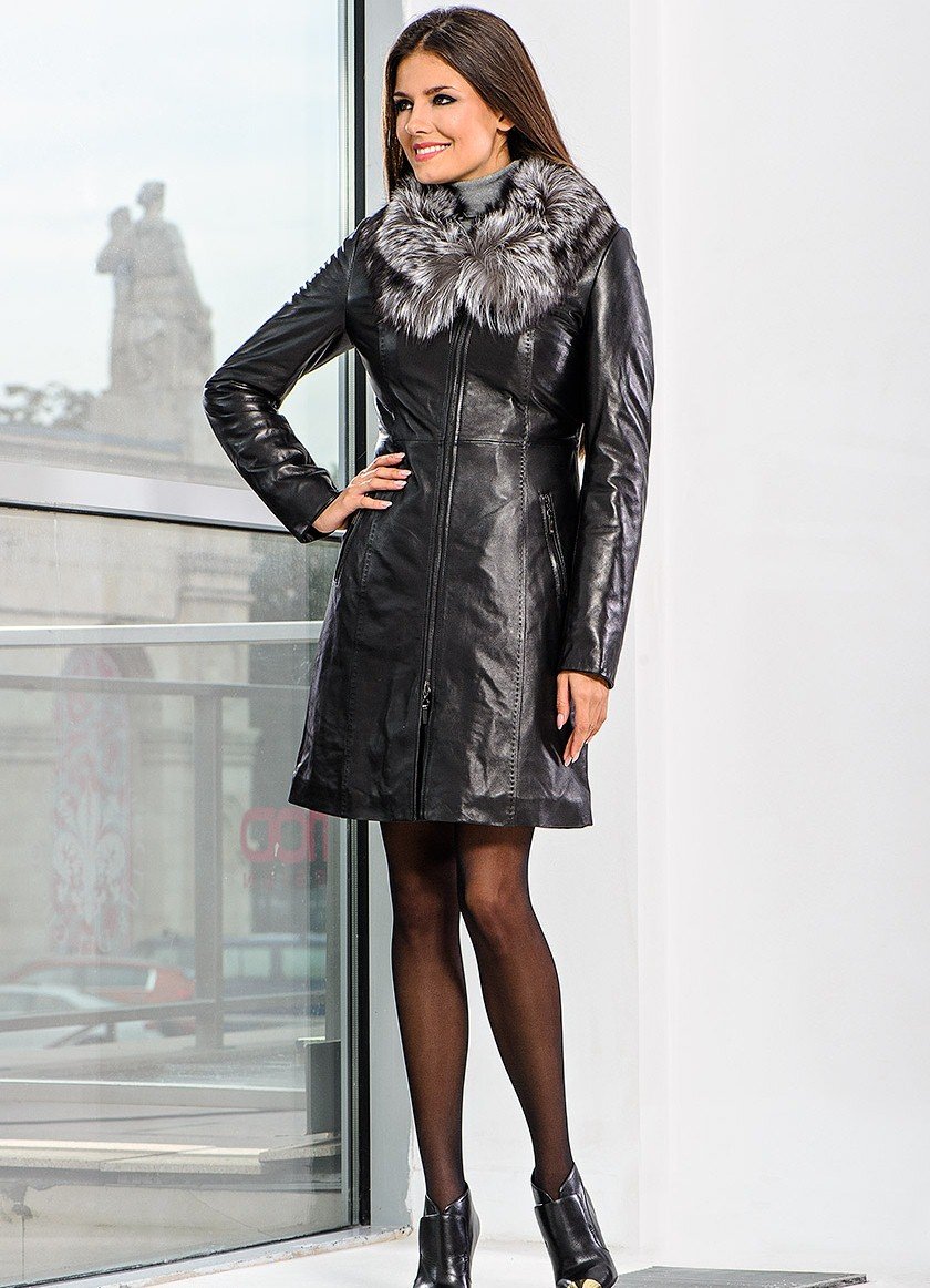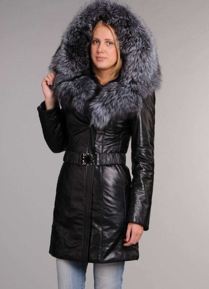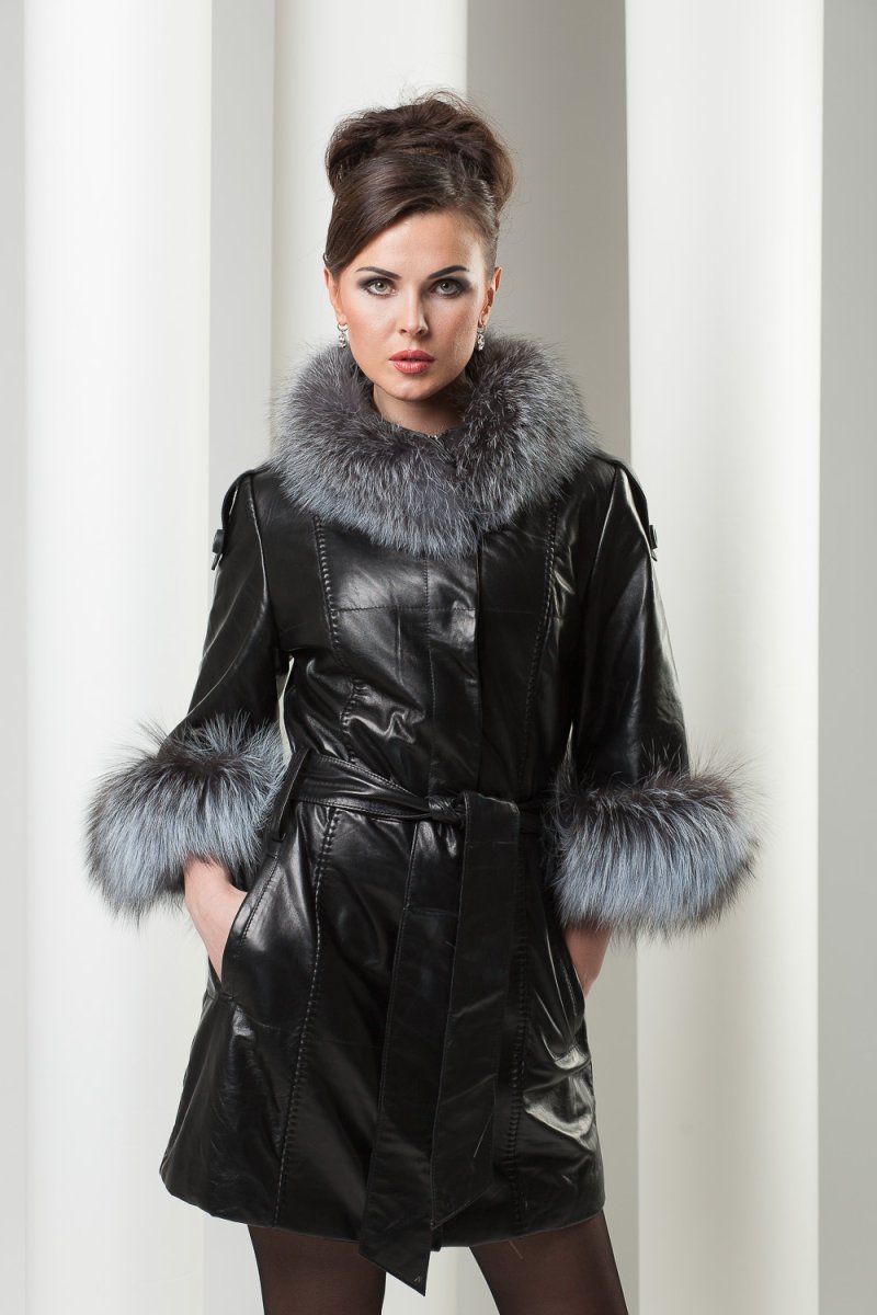 Кожаное пальто с мехом женское