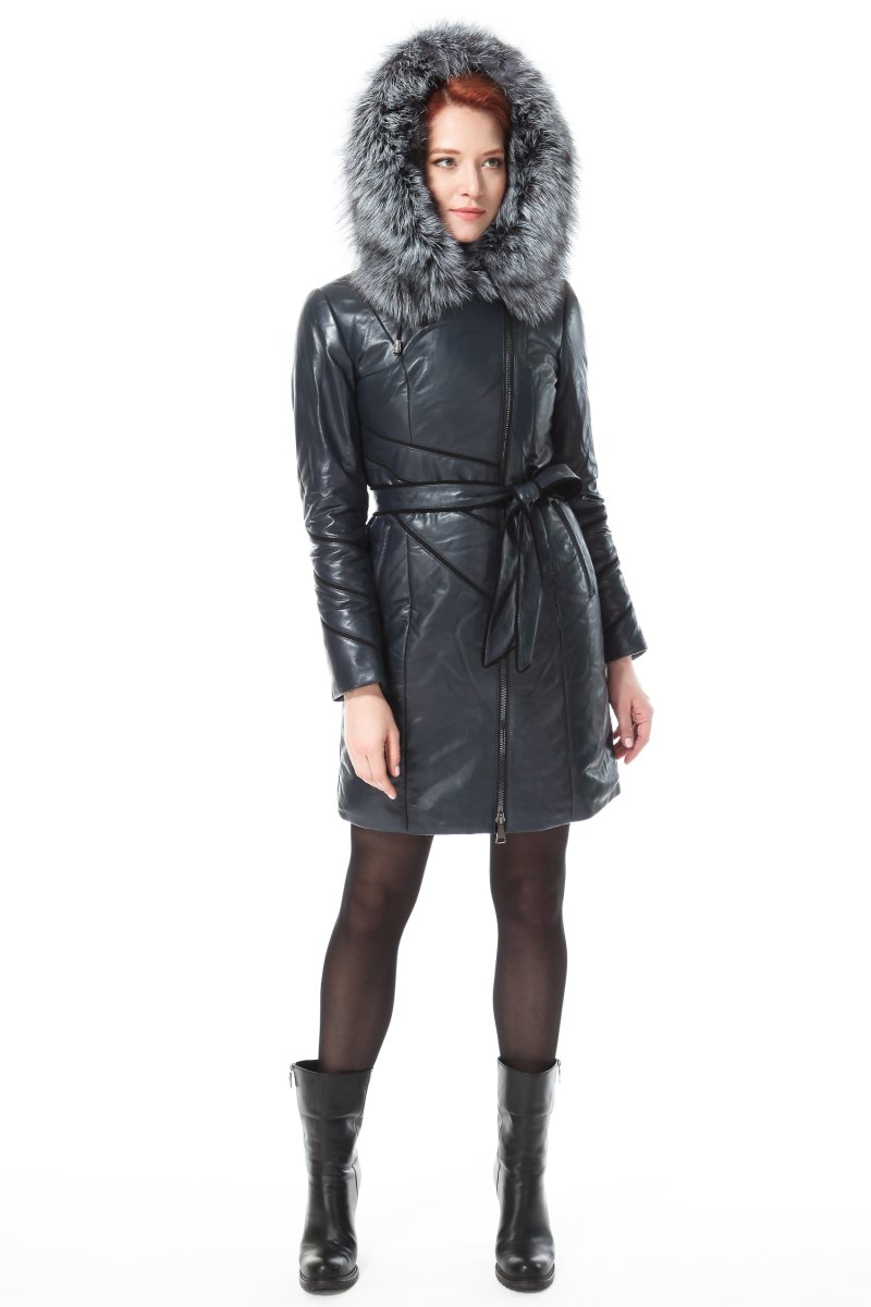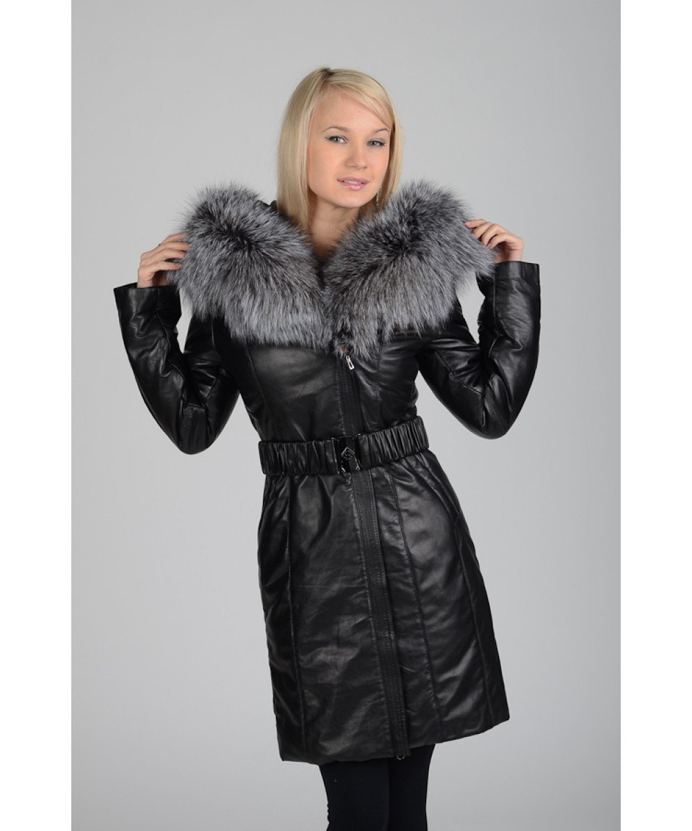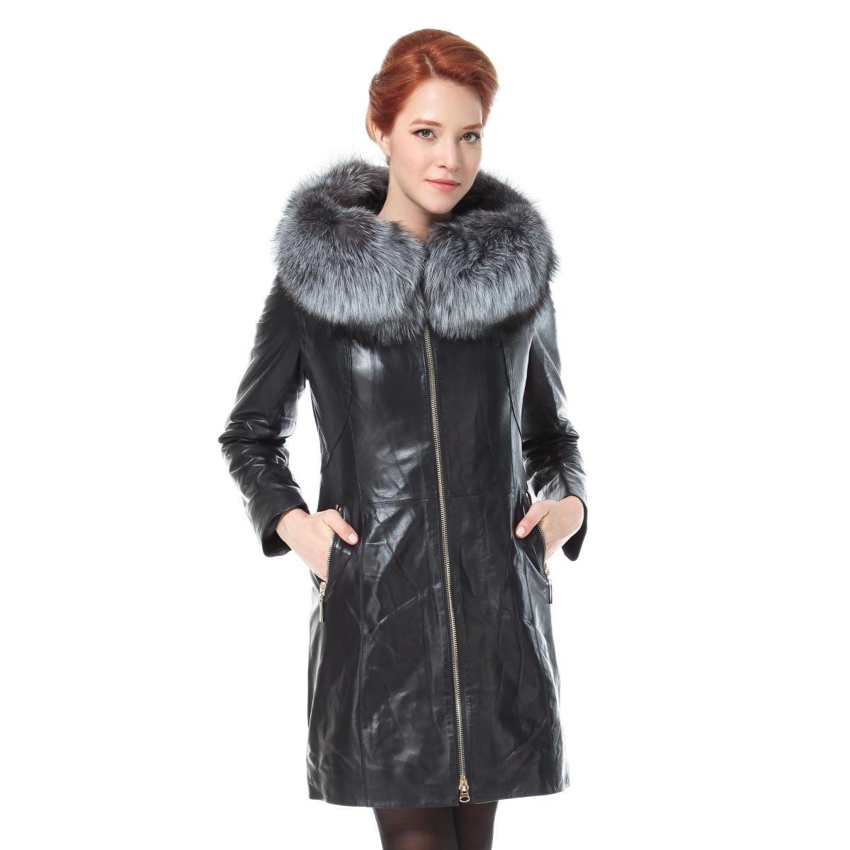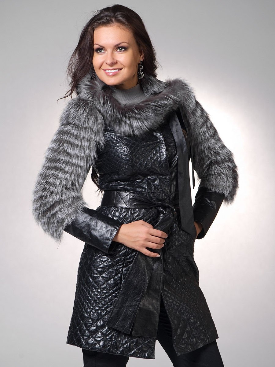 Кожаное пальто с мехом женское