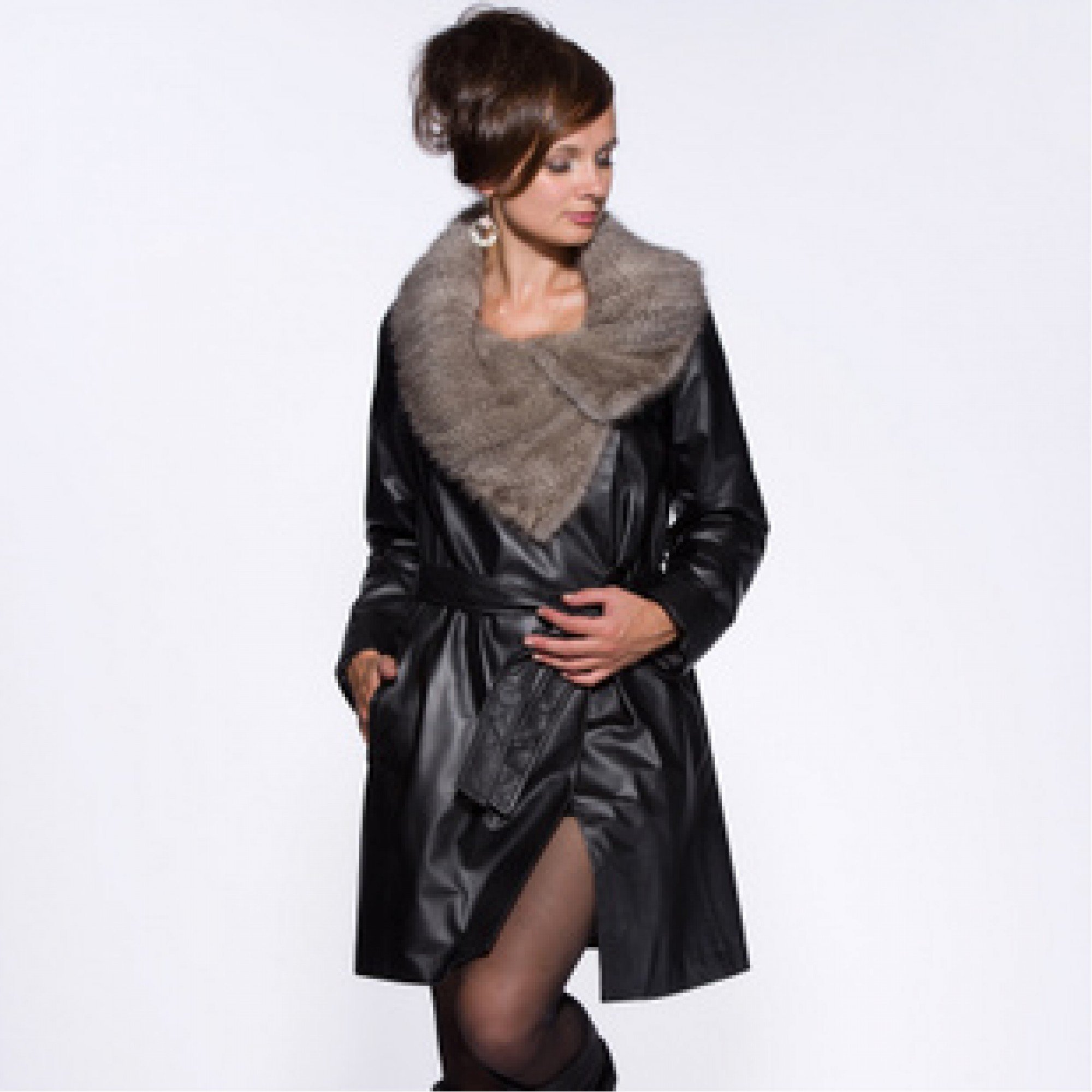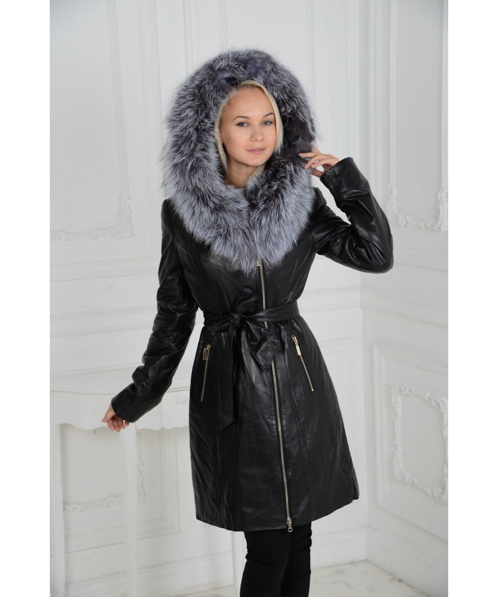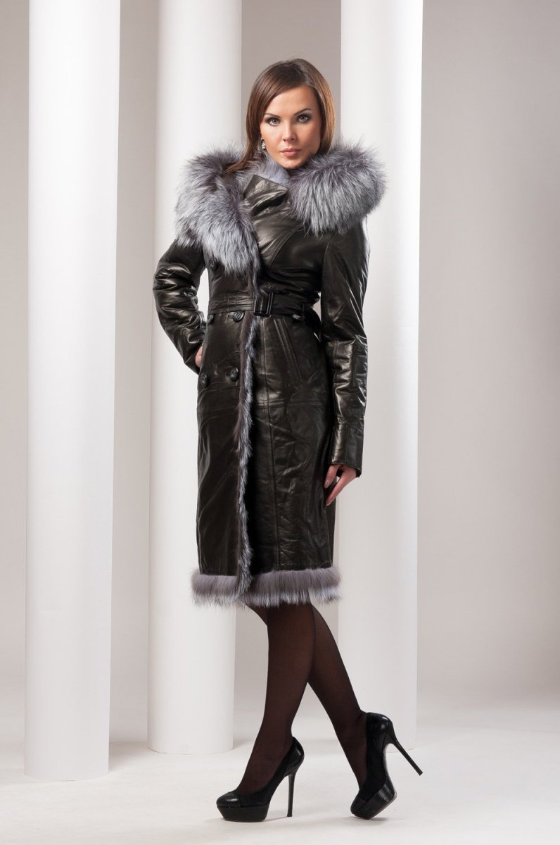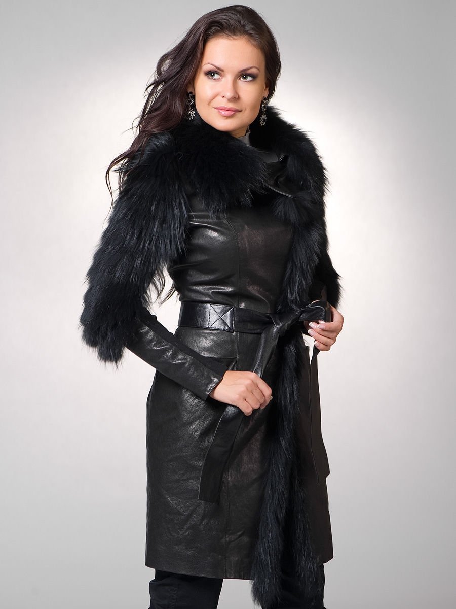 Кожаный плащ с мехом женский