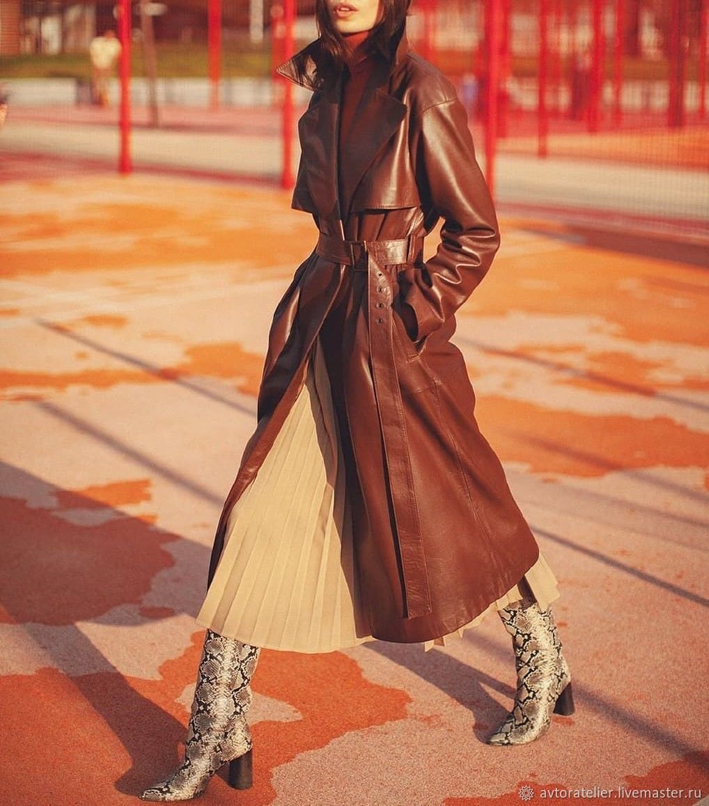 Длинный кожаный плащ