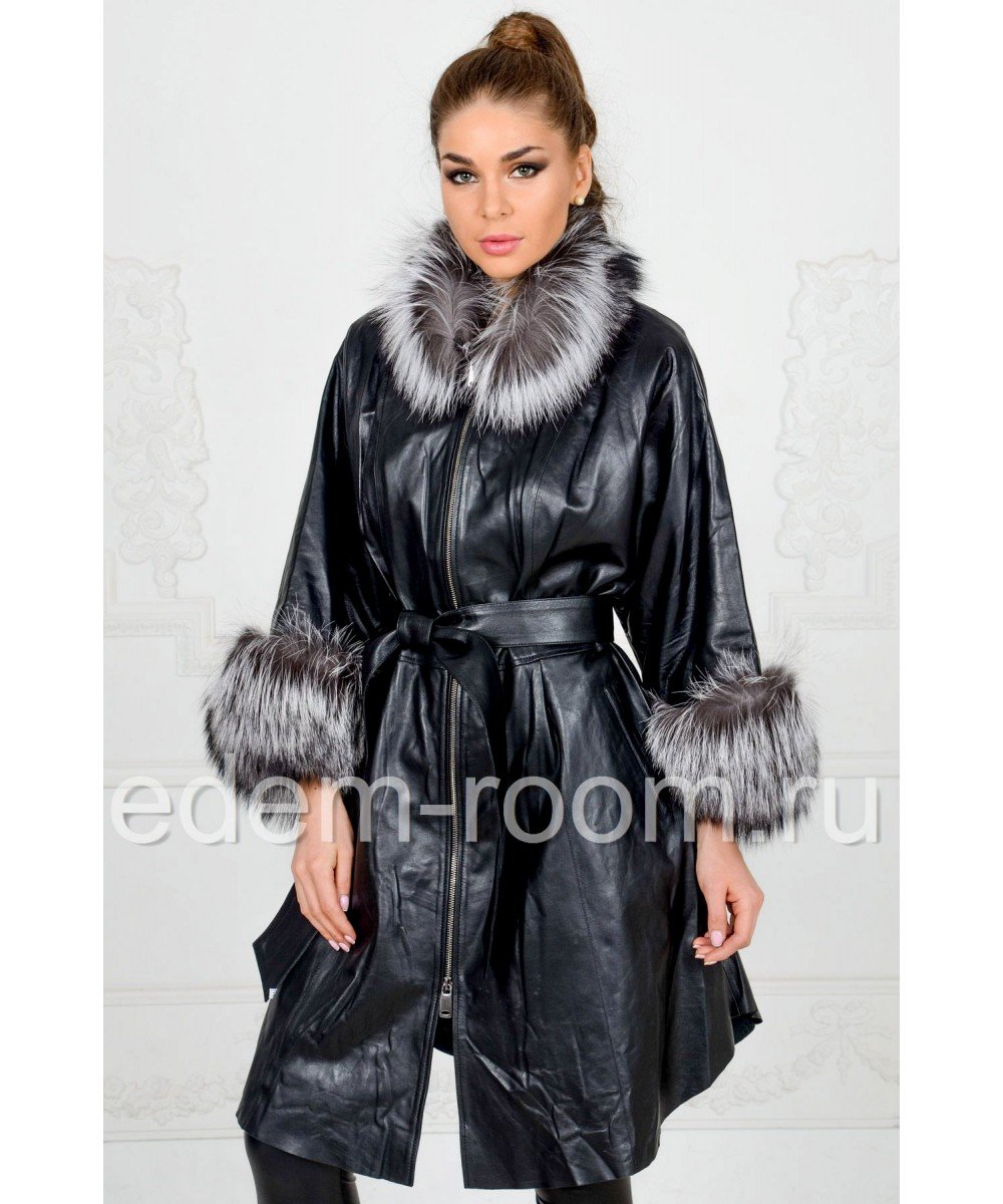 Кожаный плащ с мехом
