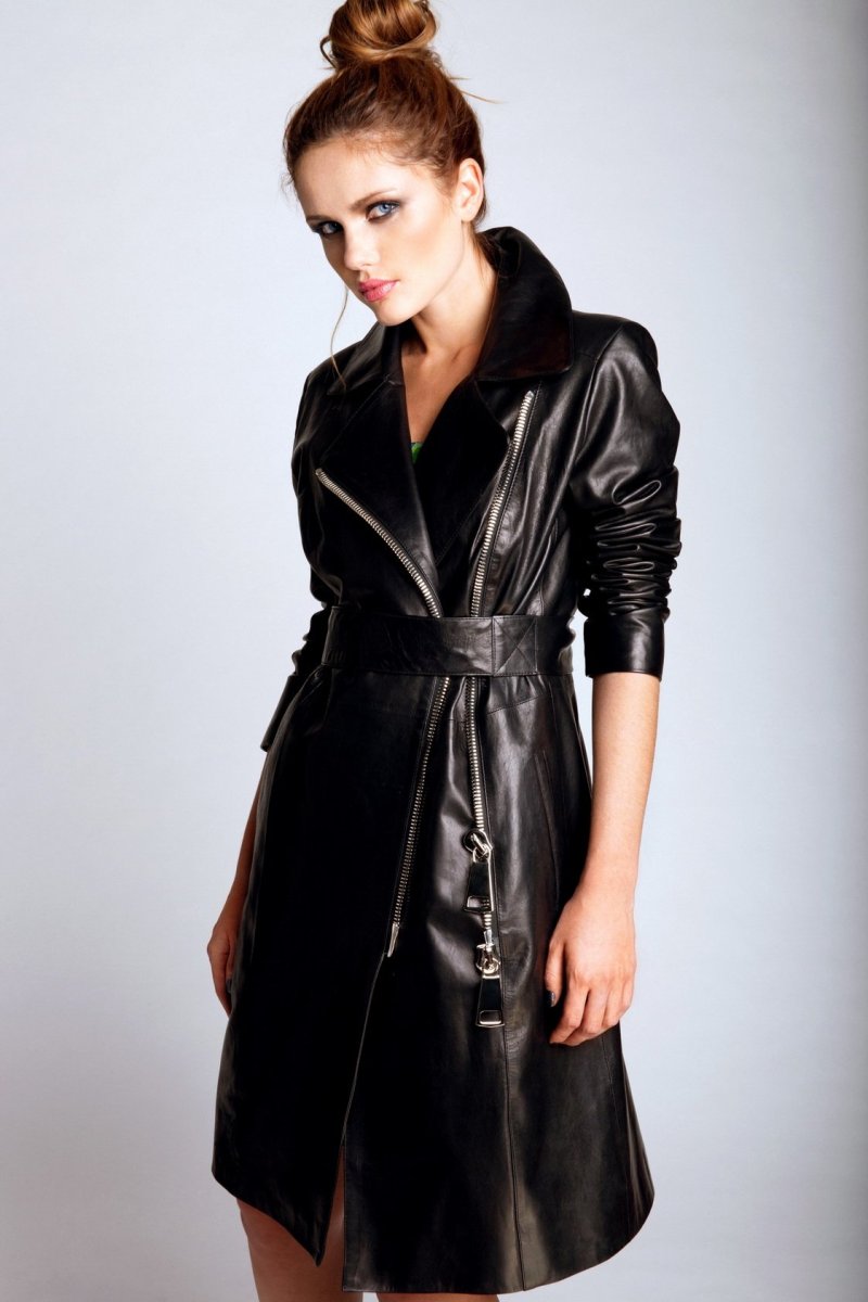 Кожаный плащ женский