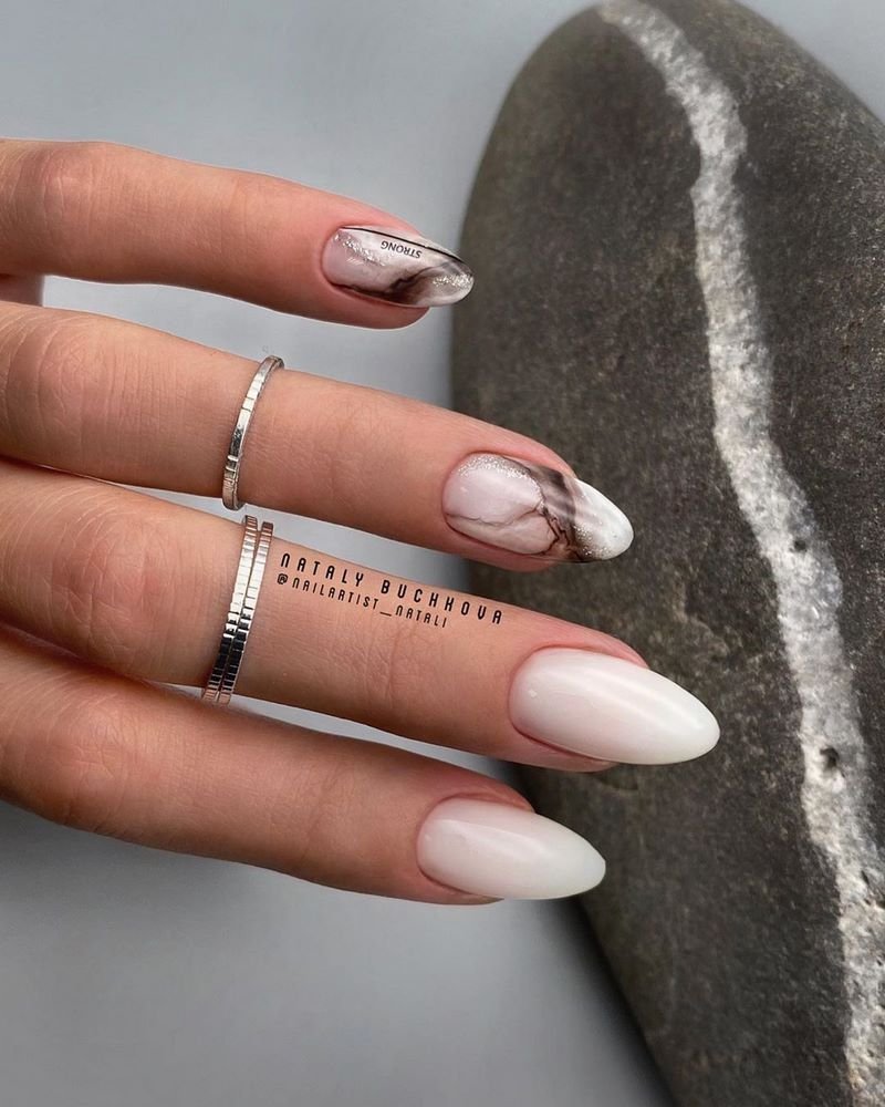 Маникюр 2022 миндаль мрамор