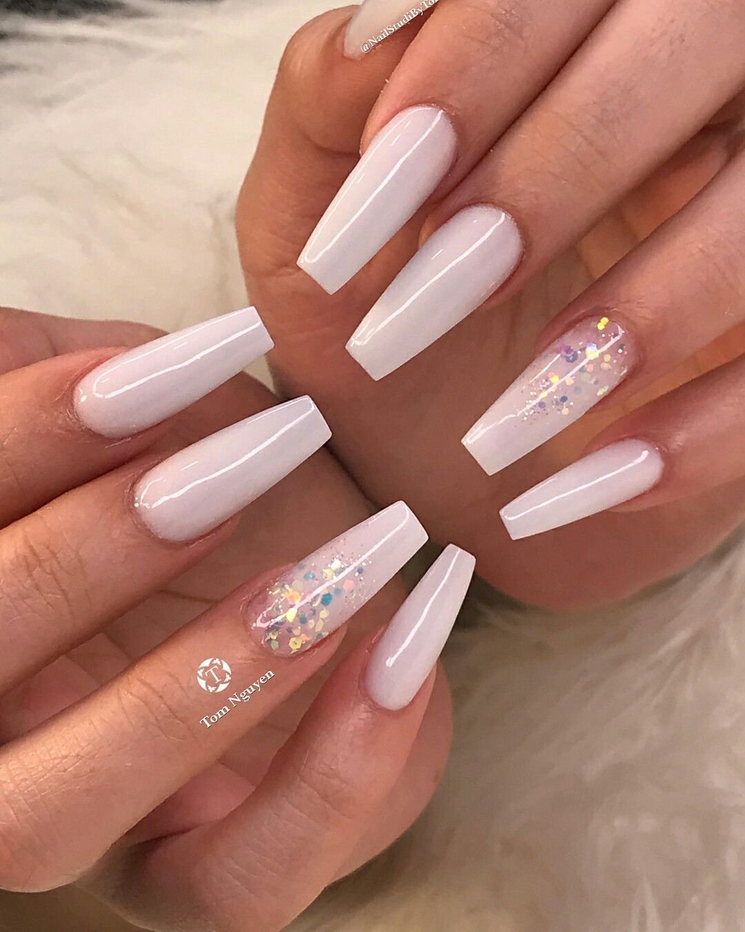 Молочные ногти балерина длинные