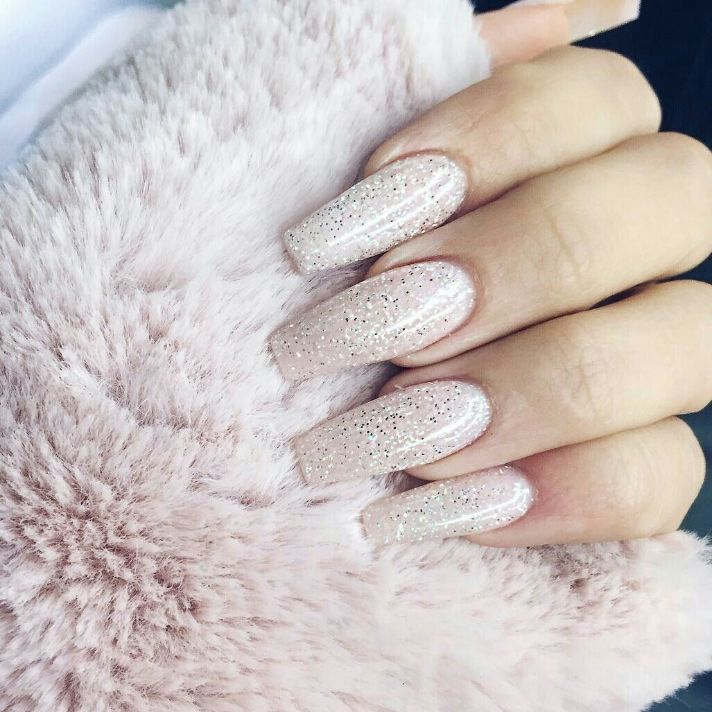 Ногти бежевые с блестками