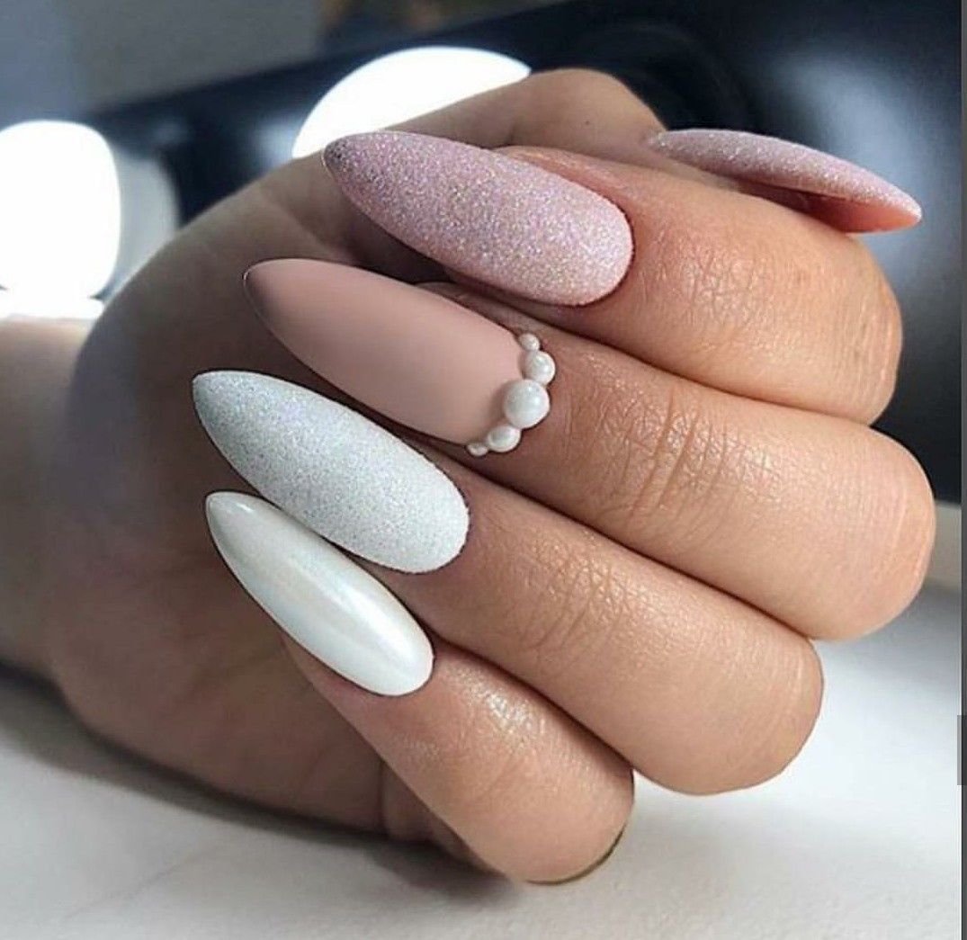 Свадебный маникюр белый миндаль