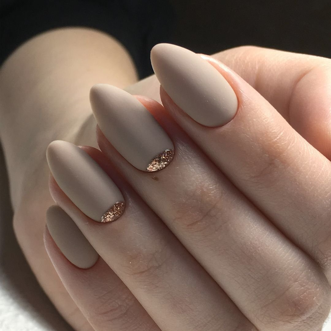 Нюдовый маникюр 2021 миндаль матовый