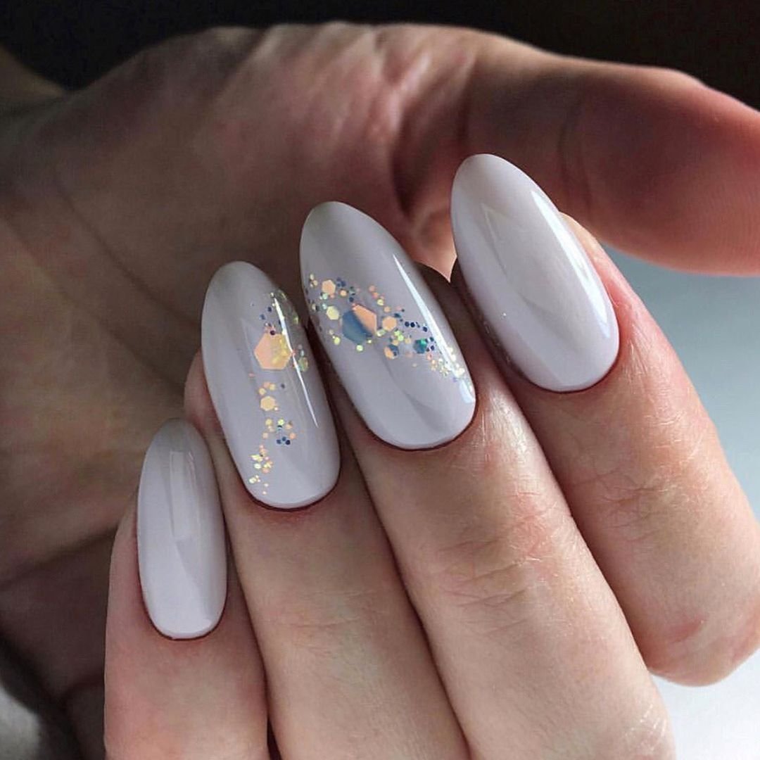 Молочные ногти маникюр миндаль