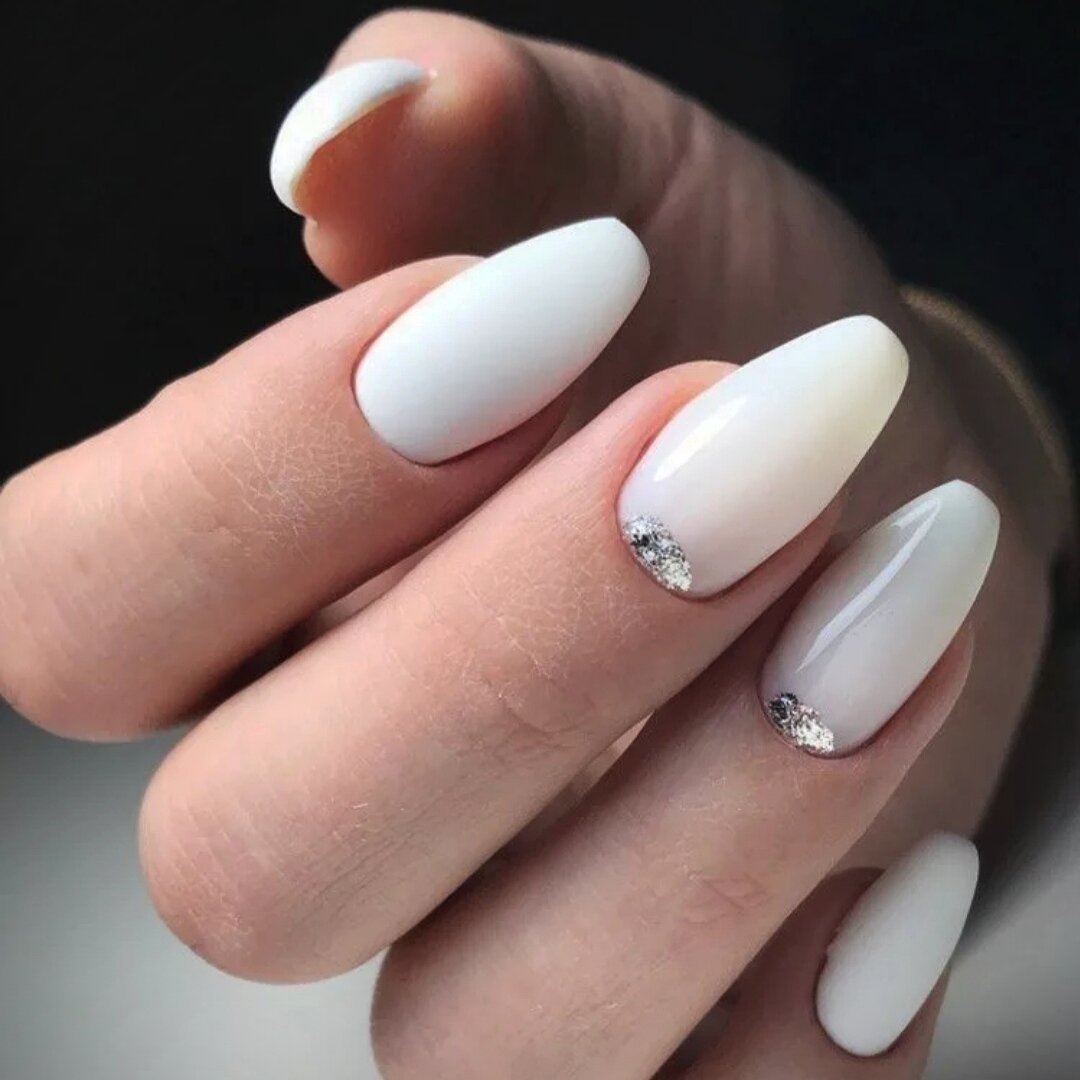 Белый маникюр миндаль