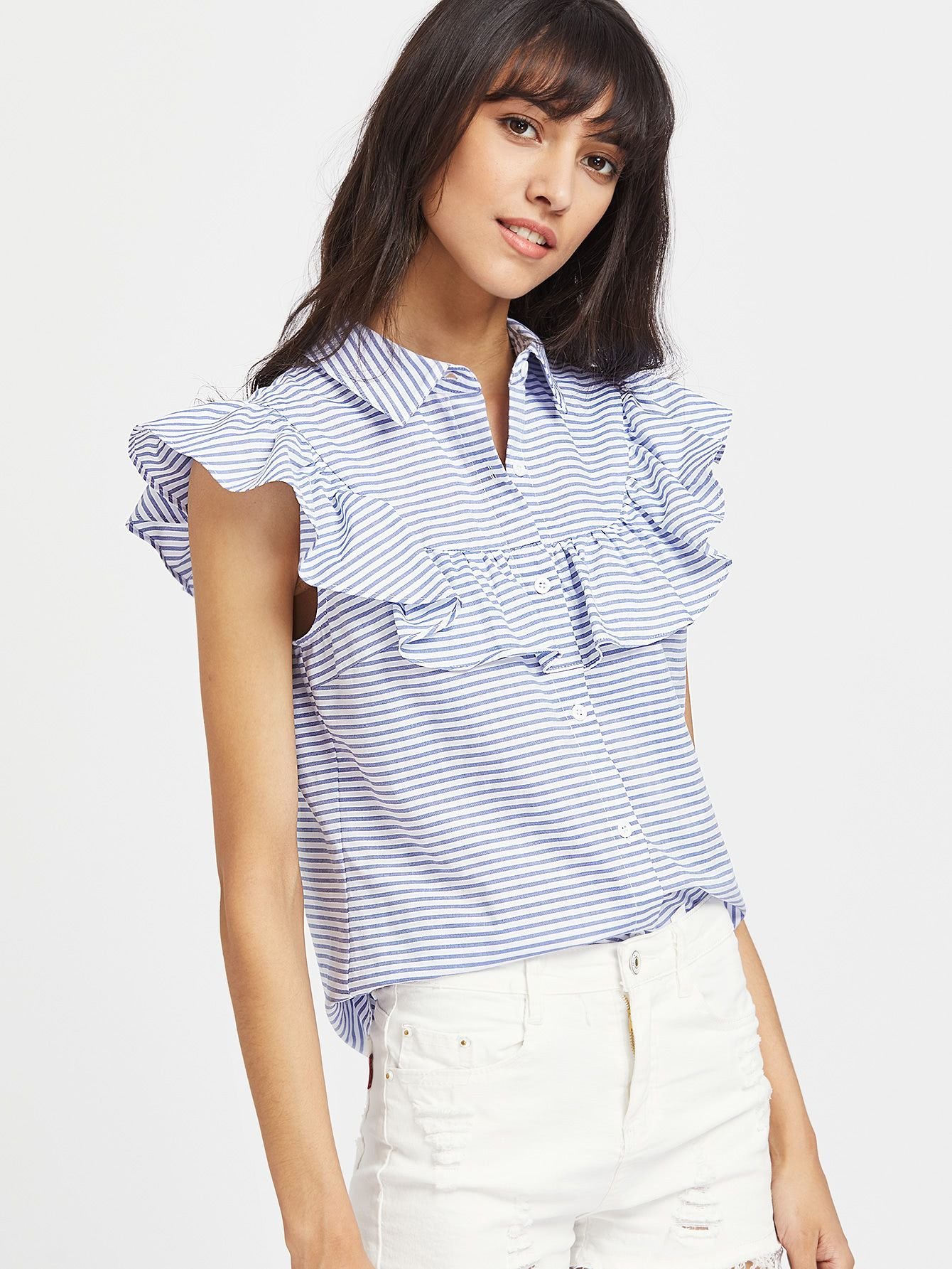 Блузка в полоску с коротким рукавом