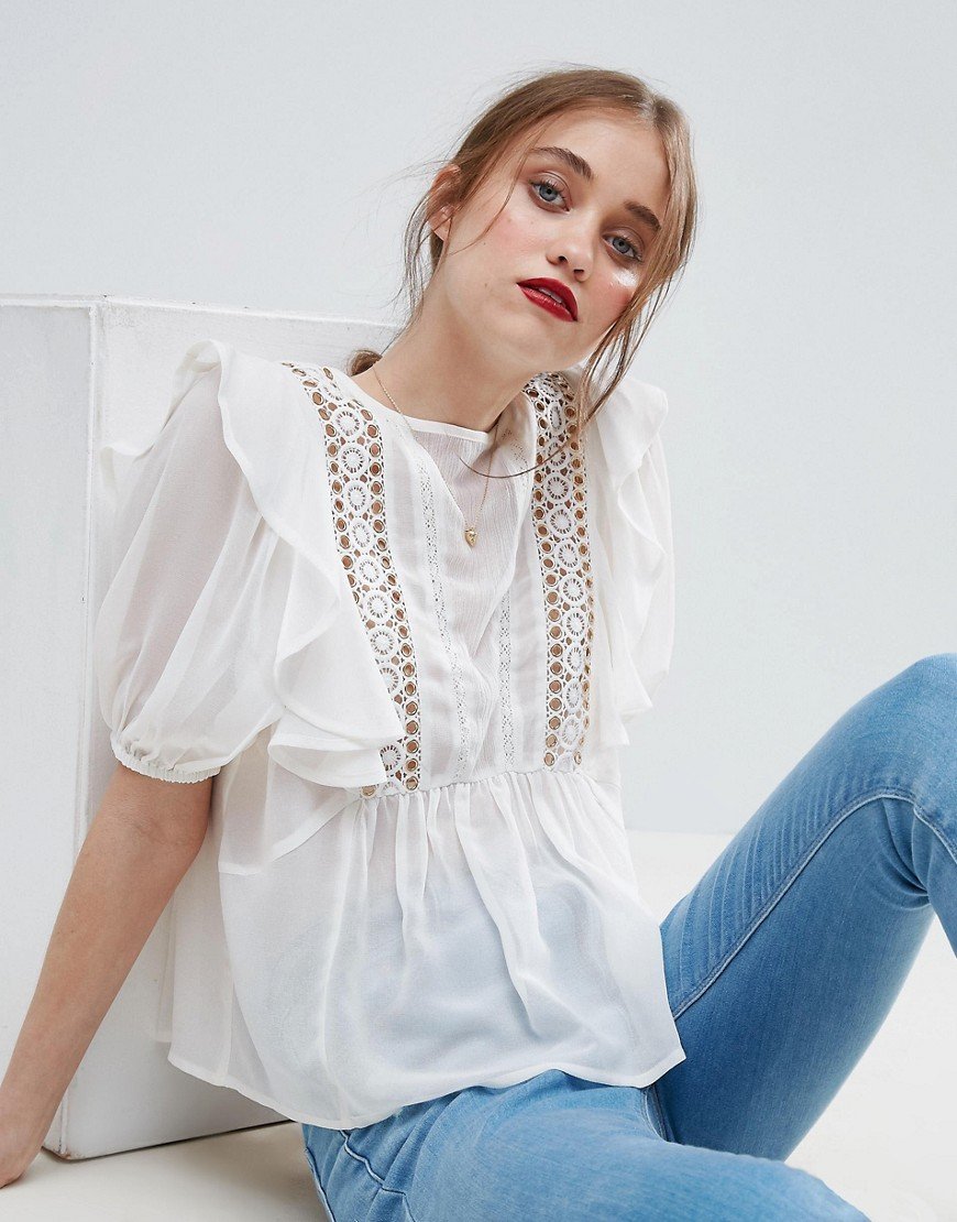 Белая блузка с кружевом