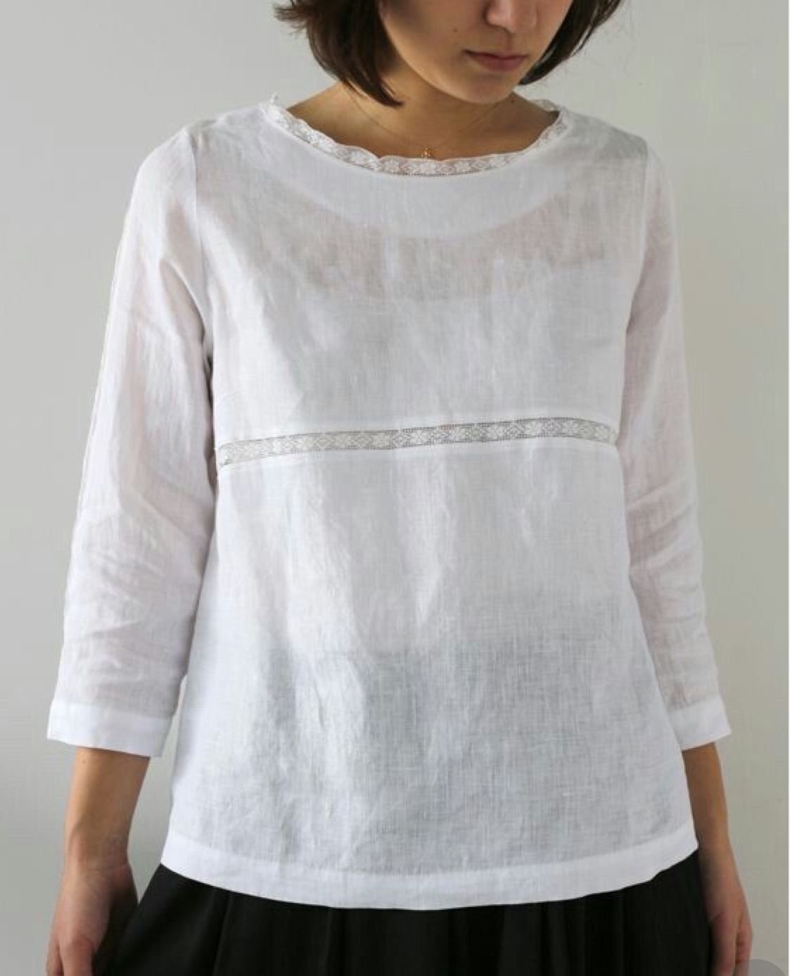 Льняная рубашка с кружевом