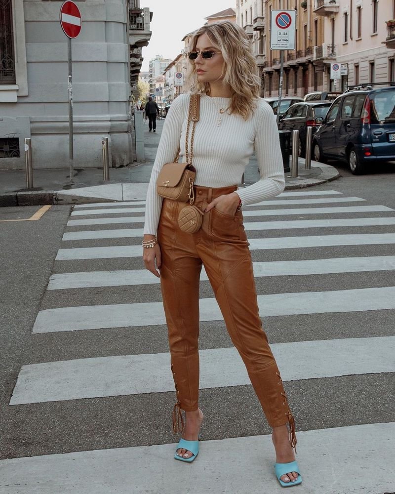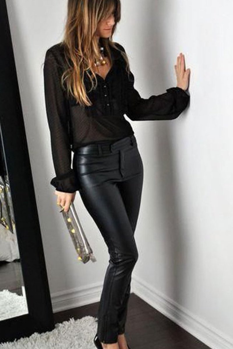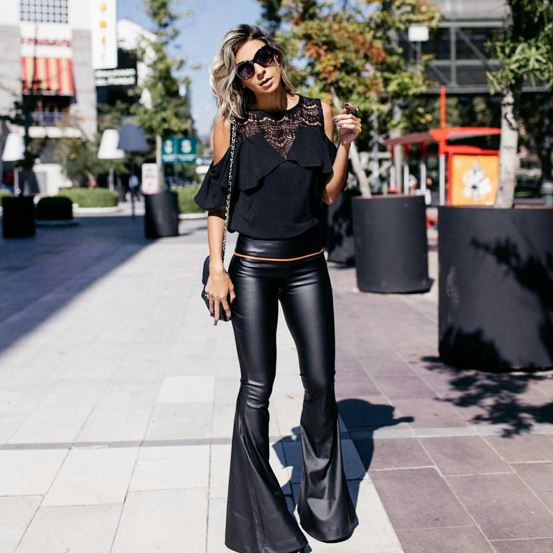 Образ с кожаными штанами и блузкой