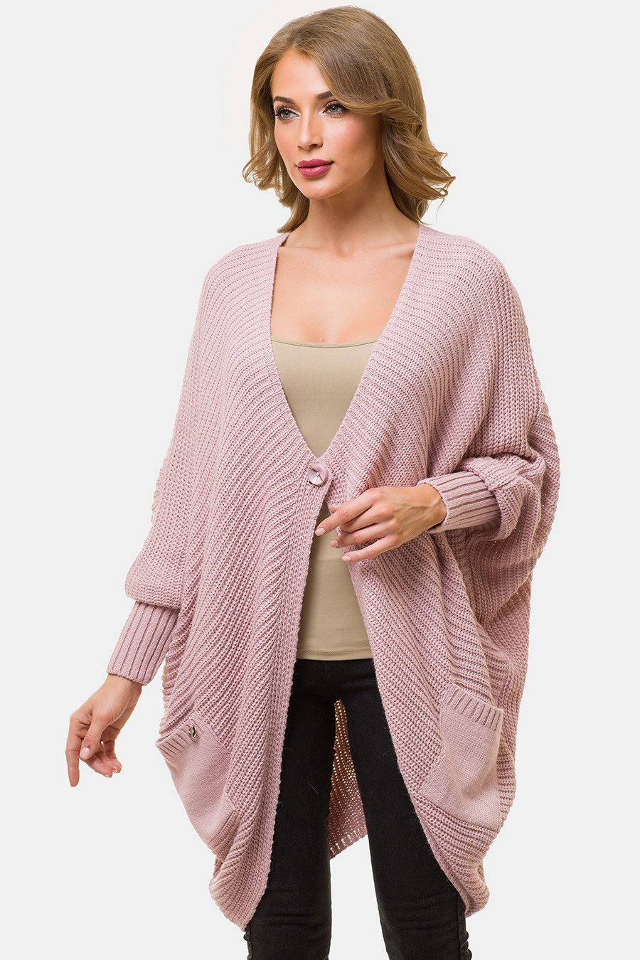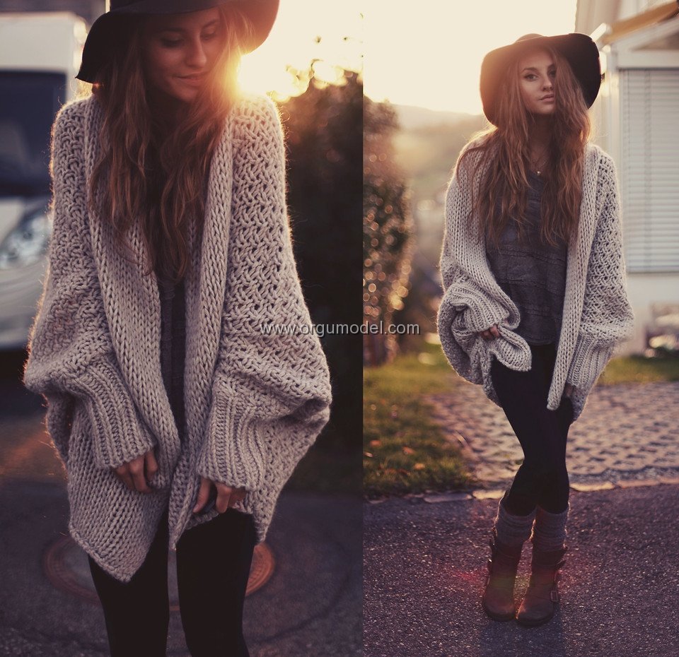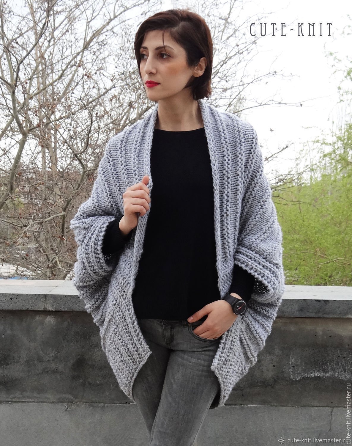 Объёмные вязаные кардиганы летучая мышь