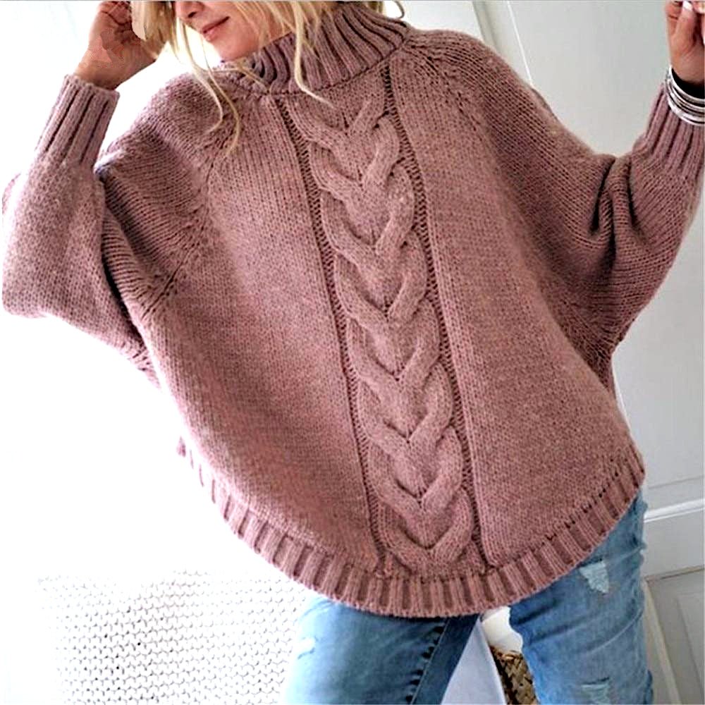 Пуловер летучая мышь ажурной вязкой спицами