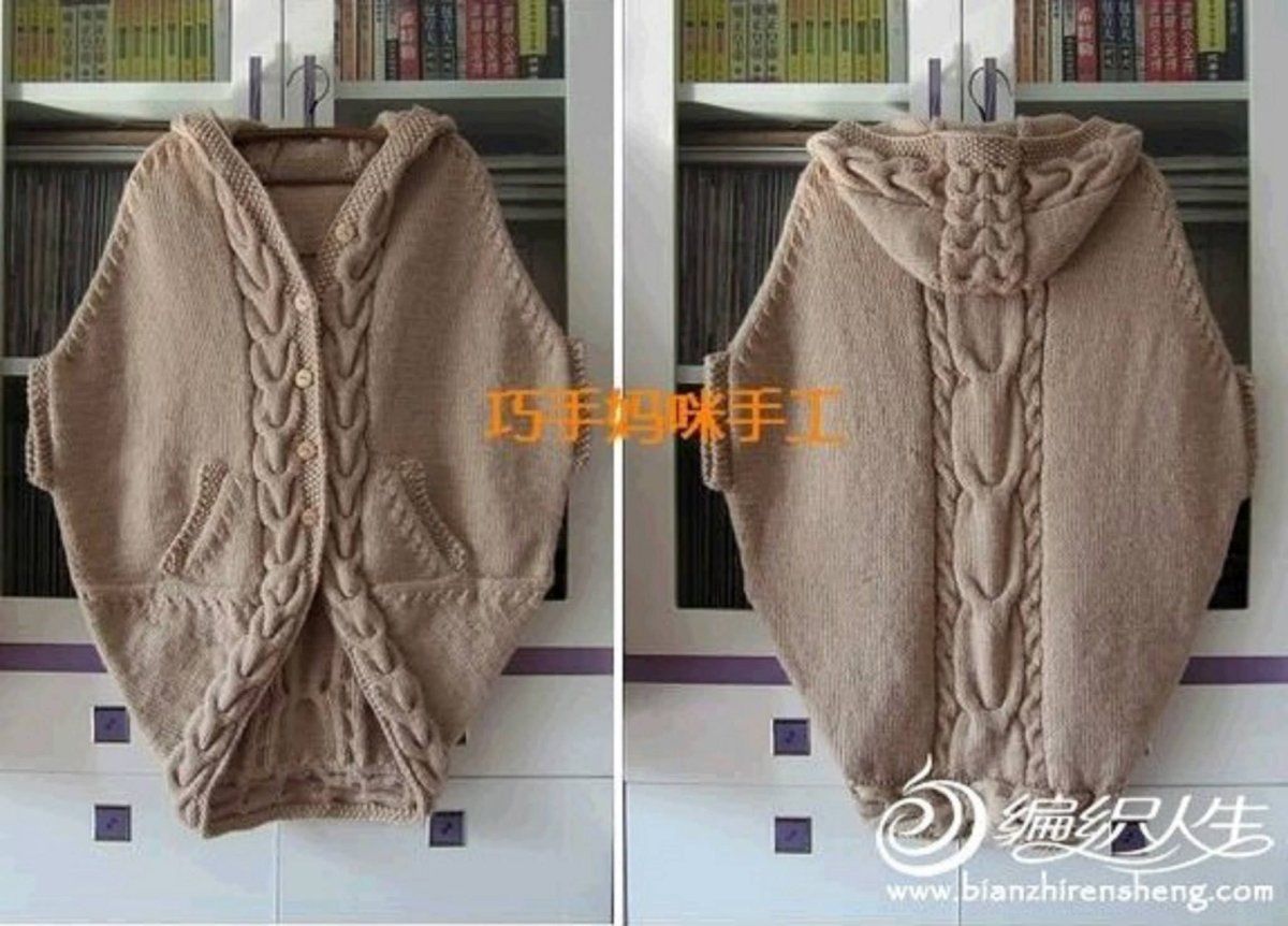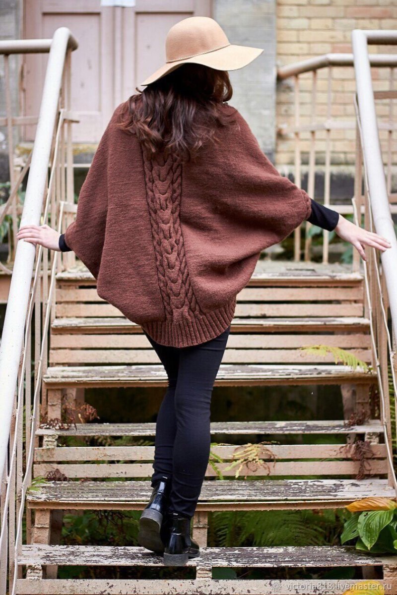 Вязаное пончо с рукавами