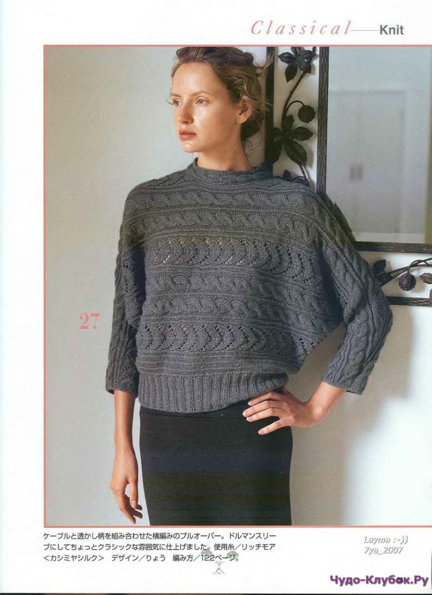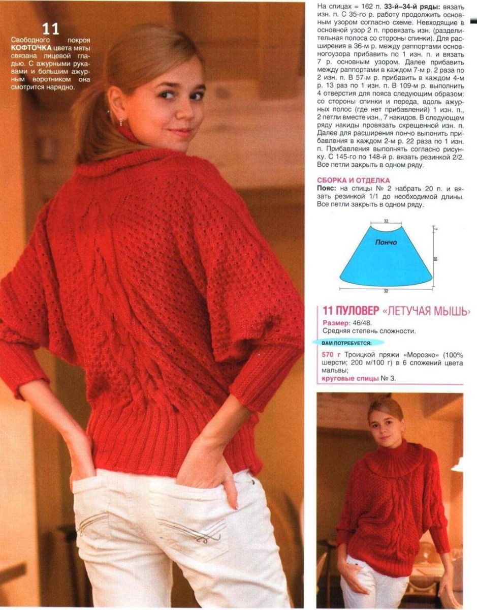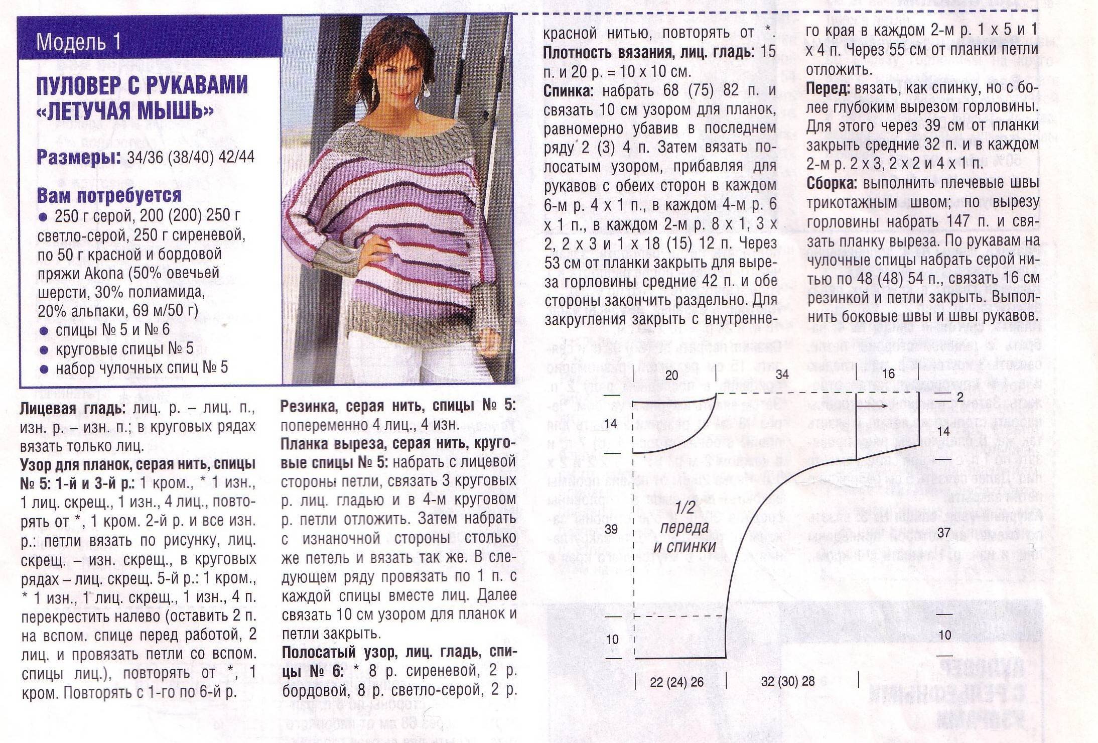 Пуловер летучая мышь спицами для начинающих схемы с описанием
