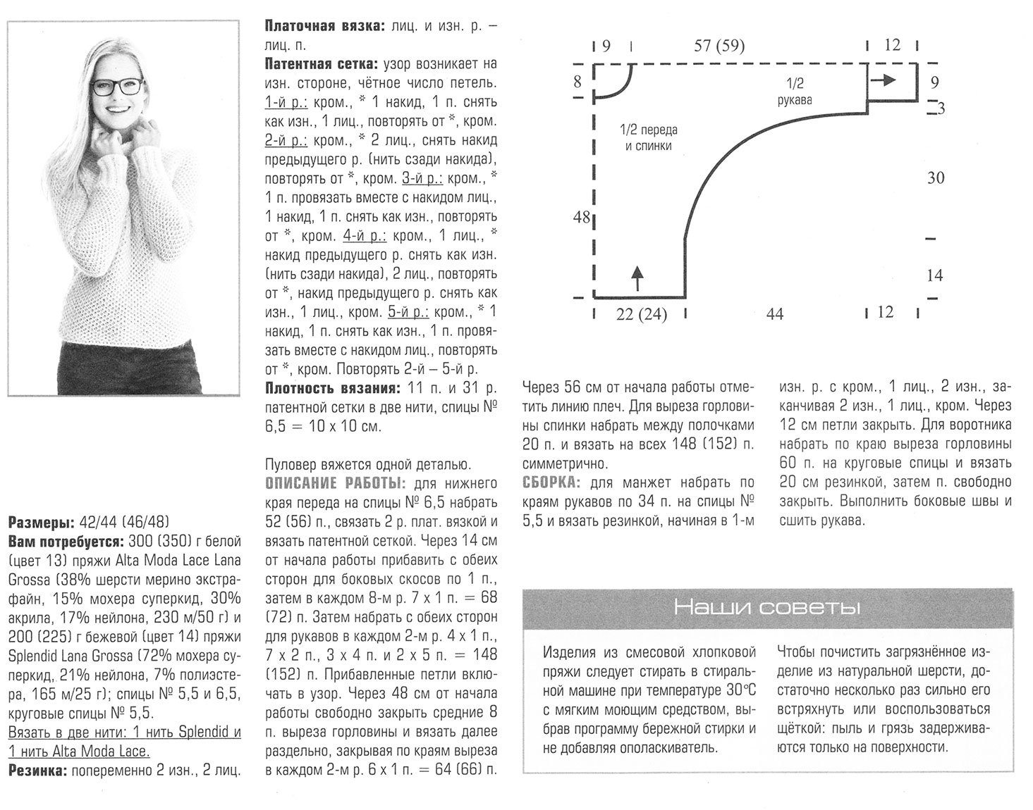 Вязаный джемпер спицами для женщин с описанием и схемой для полных
