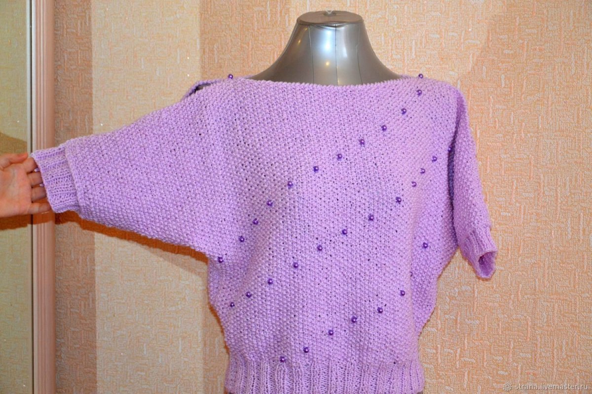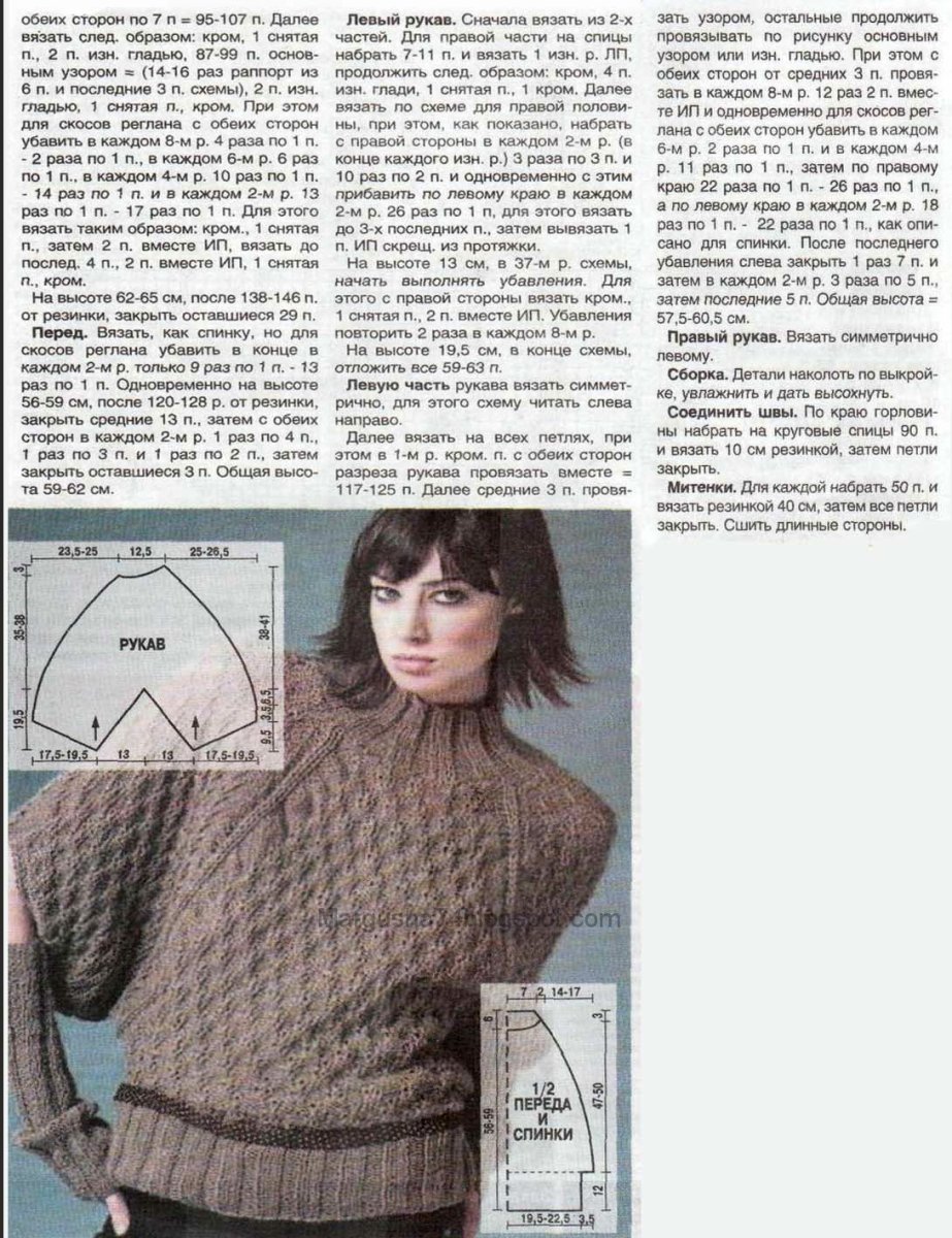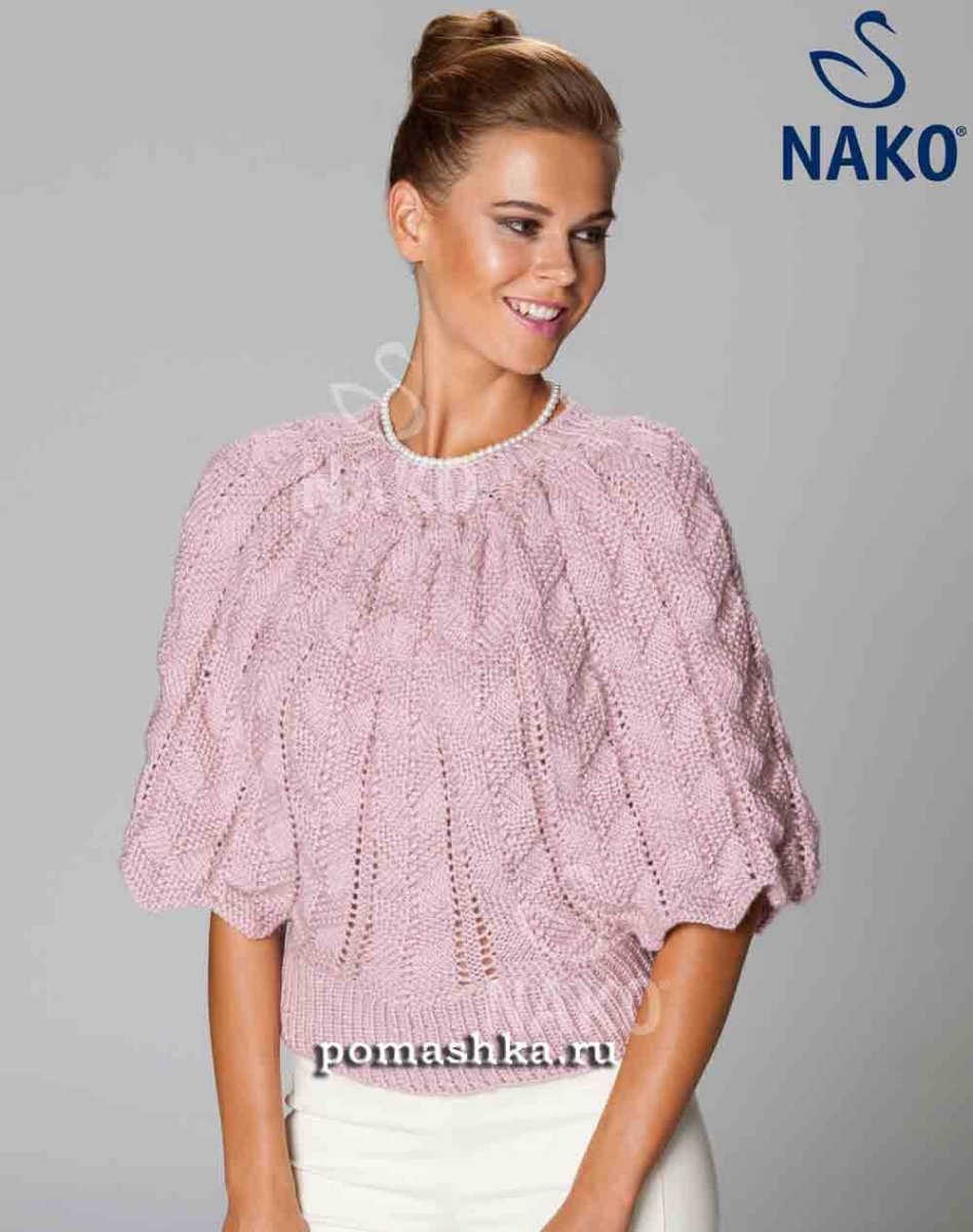 Джемпер летучая мышь спицами со схемами вязание от рукава