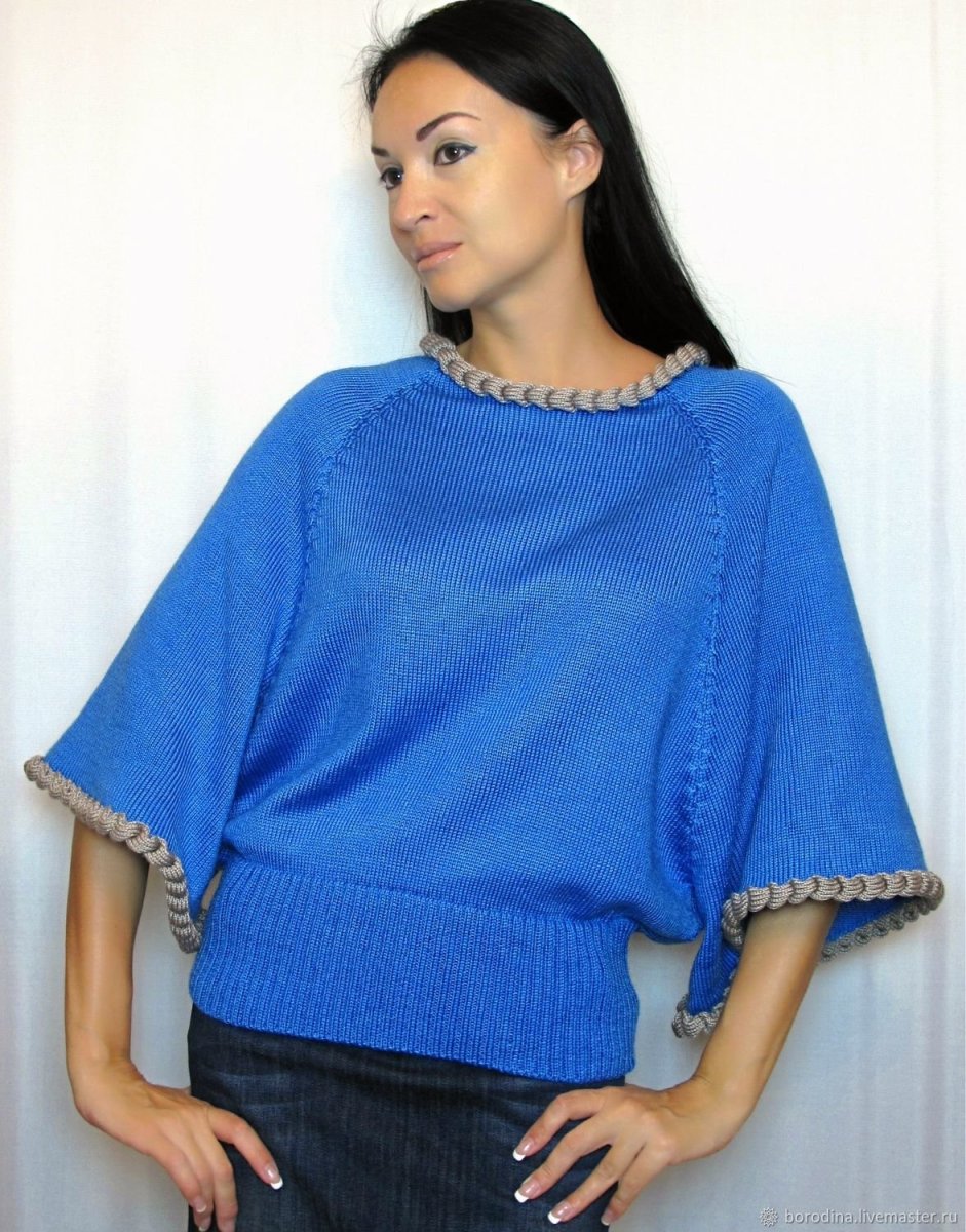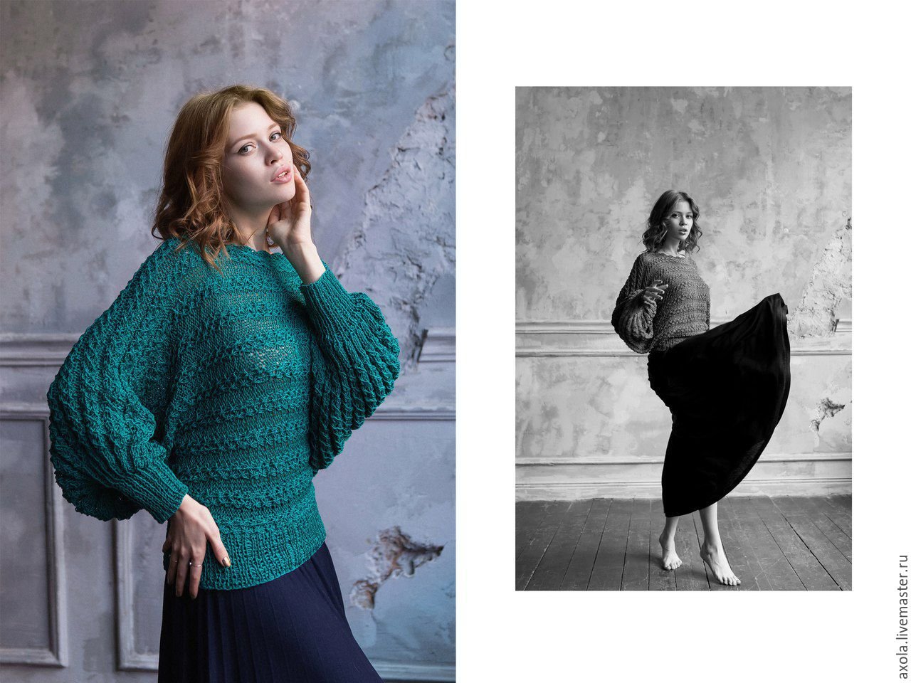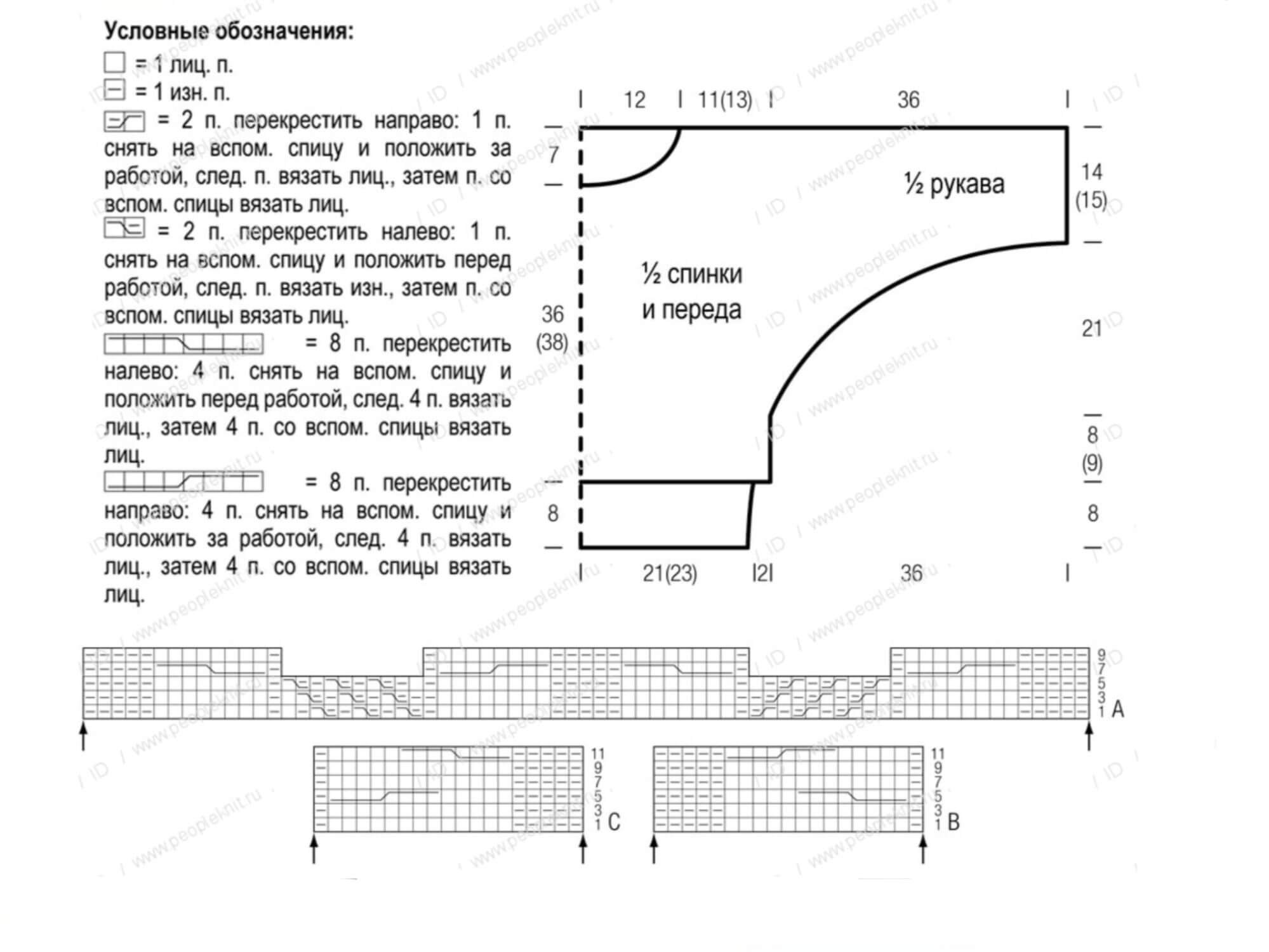 Джемпер летучая мышь спицами со схемами вязание от рукава