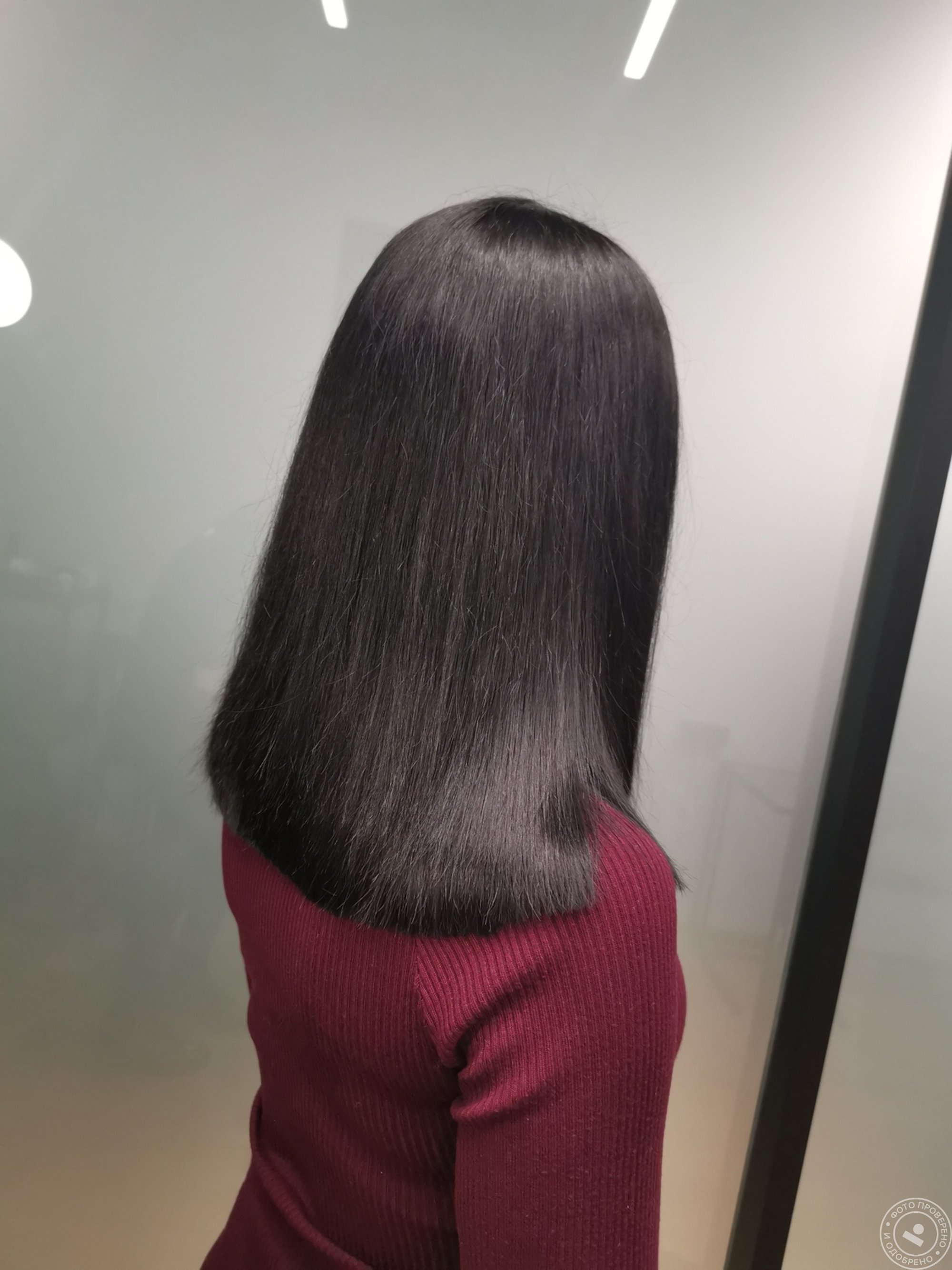 Ровный срез на средние волосы