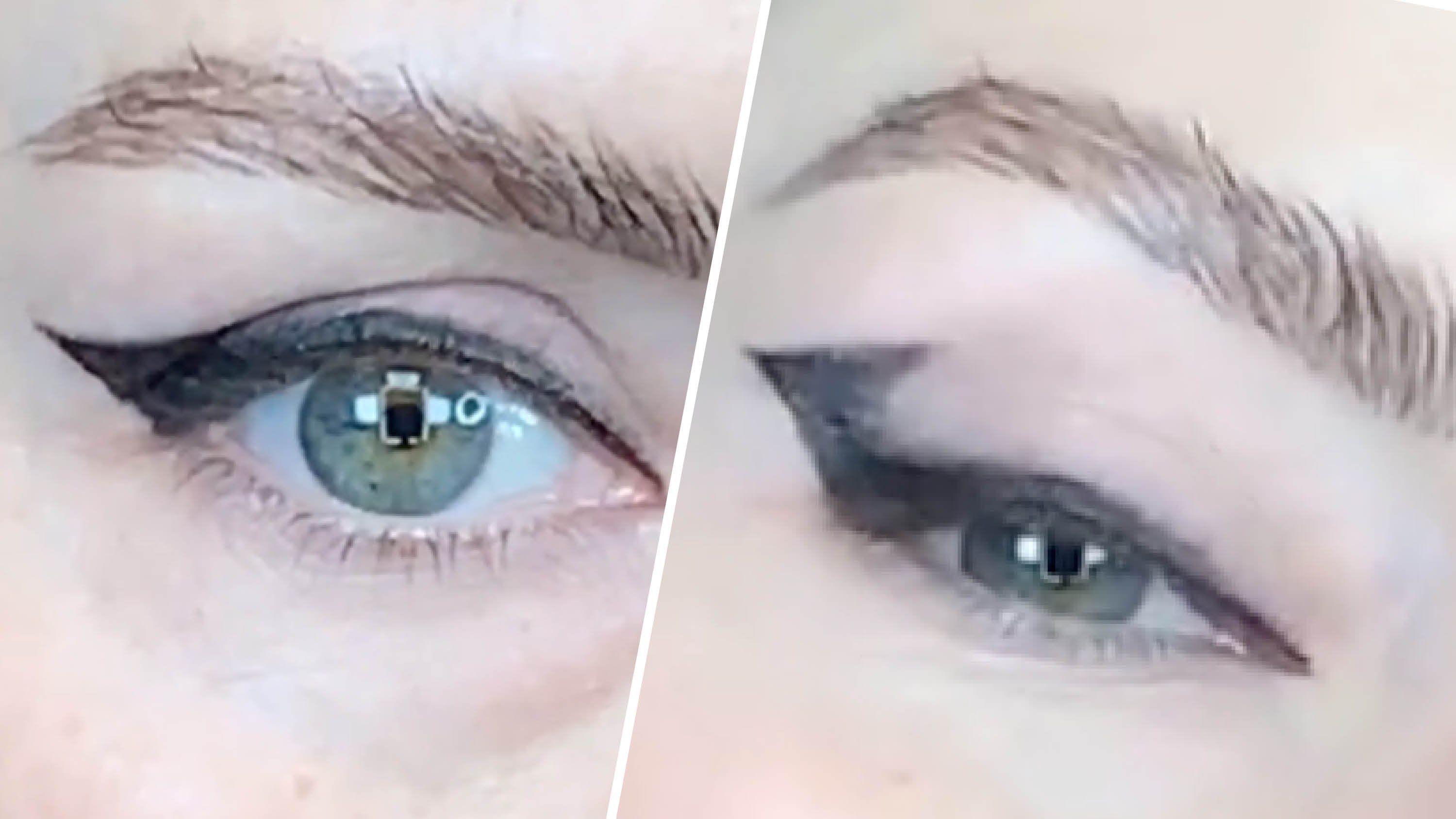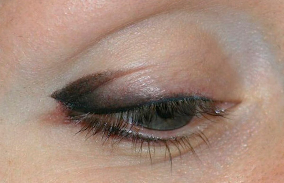Татуаж стрелки на глазах с растушевкой на нависшее веко