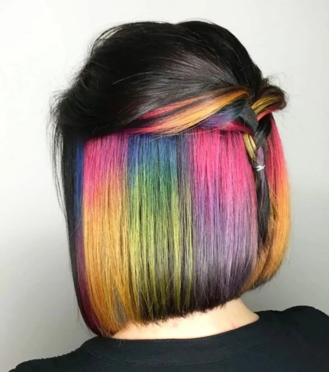 Скрытое окрашивание 2022 на тёмные волосы каре