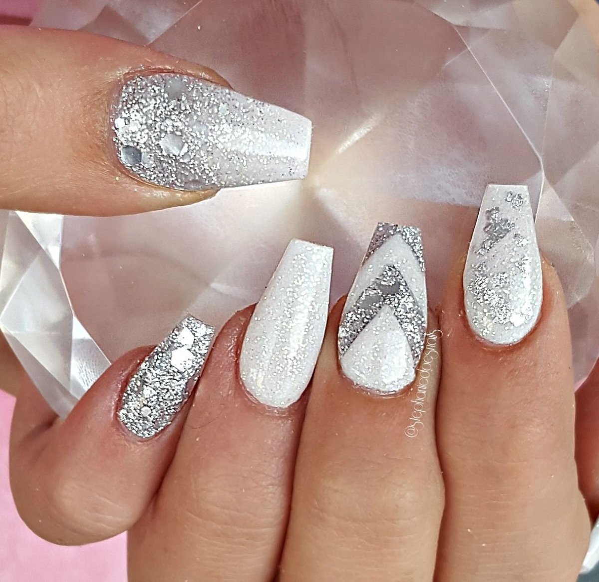 Маникюр белый с серебром