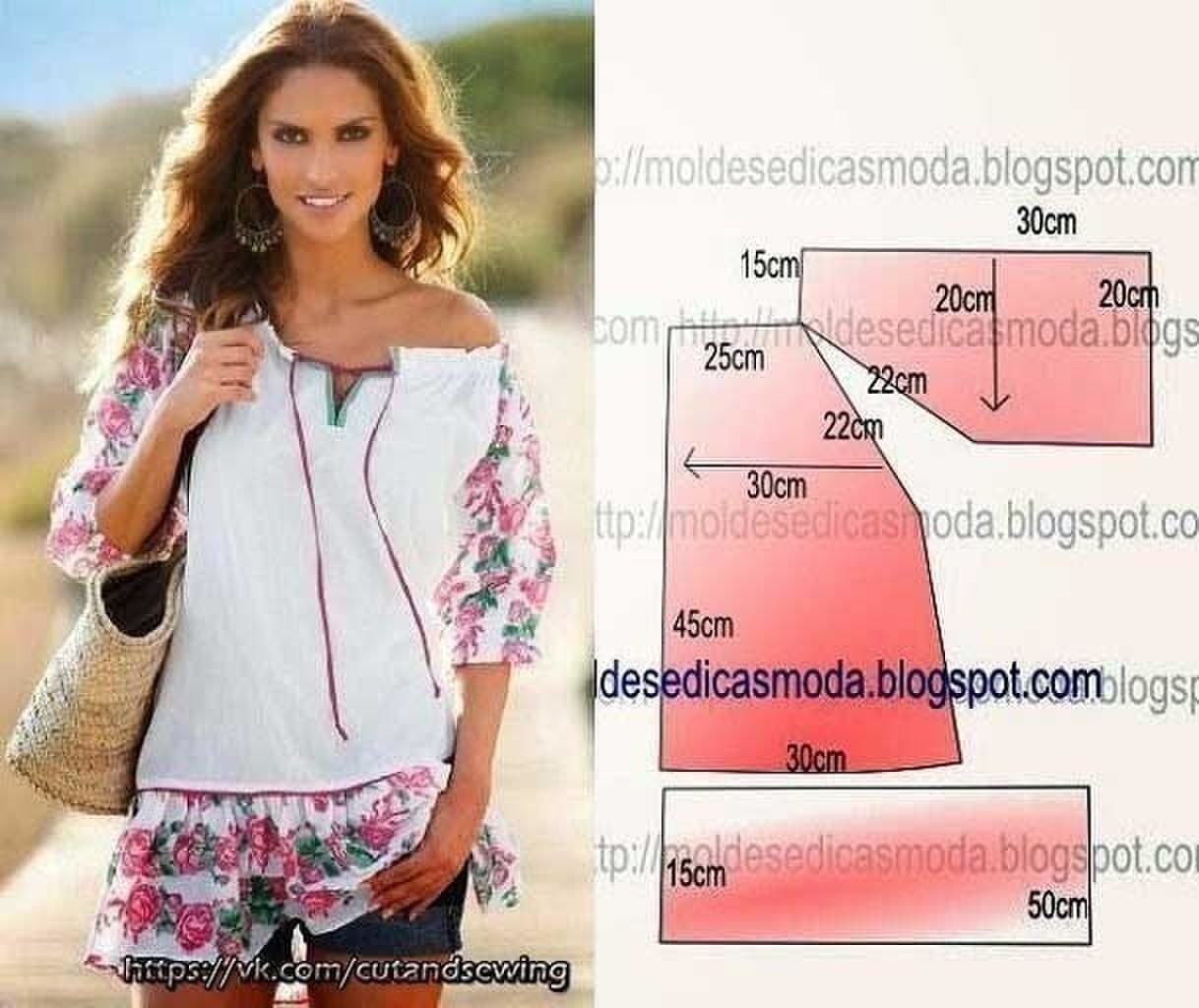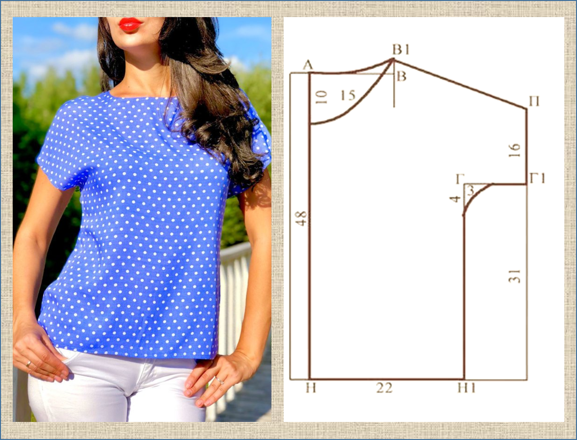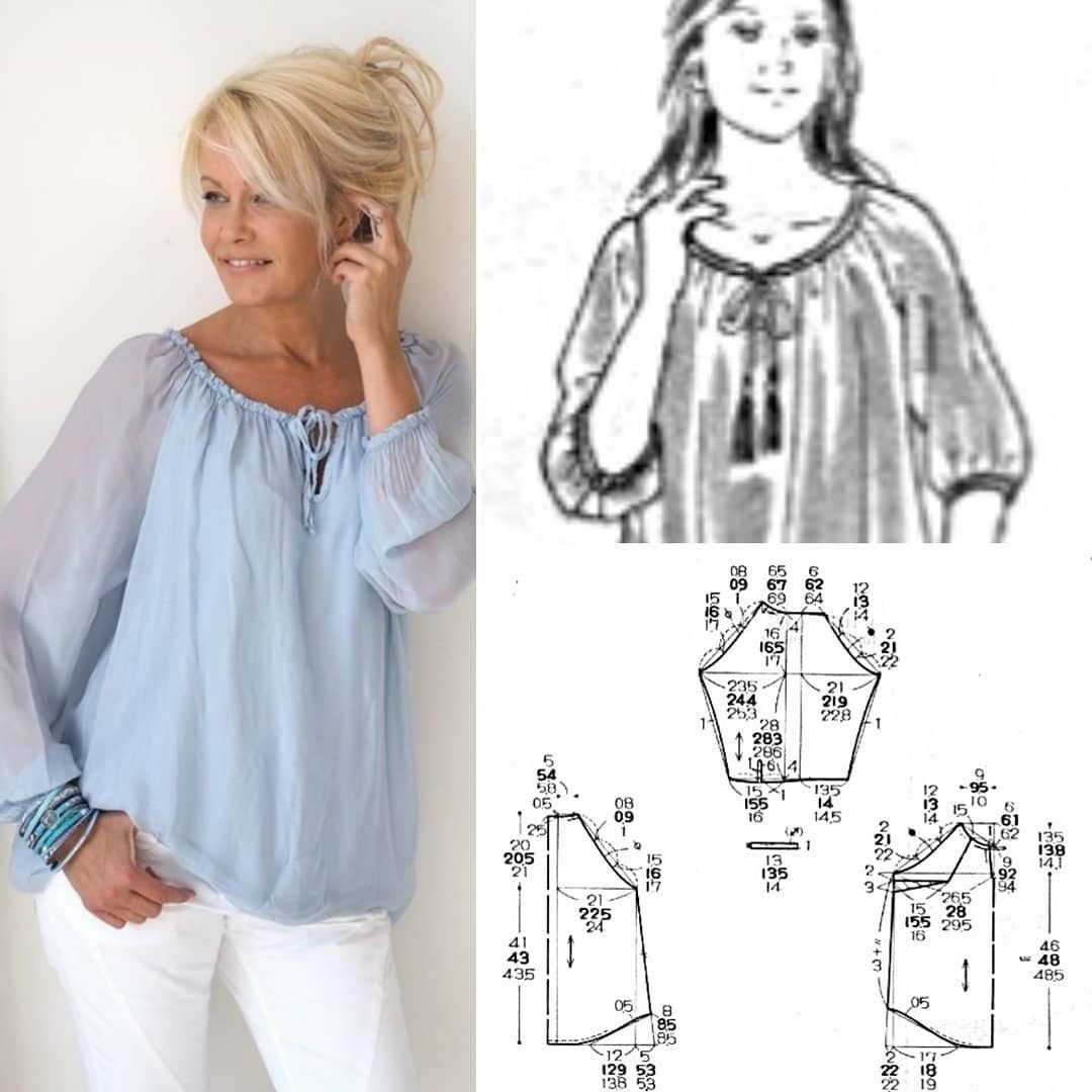 Выкройка блузы с цельнокроеным рукавом 48 размера