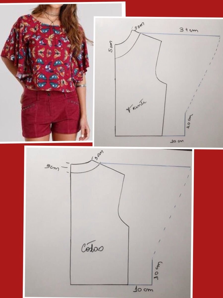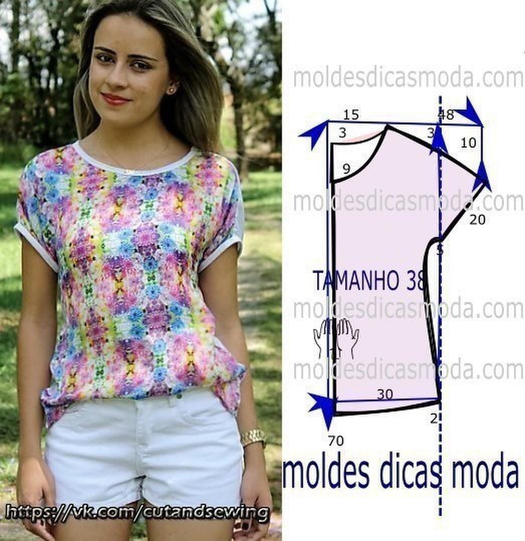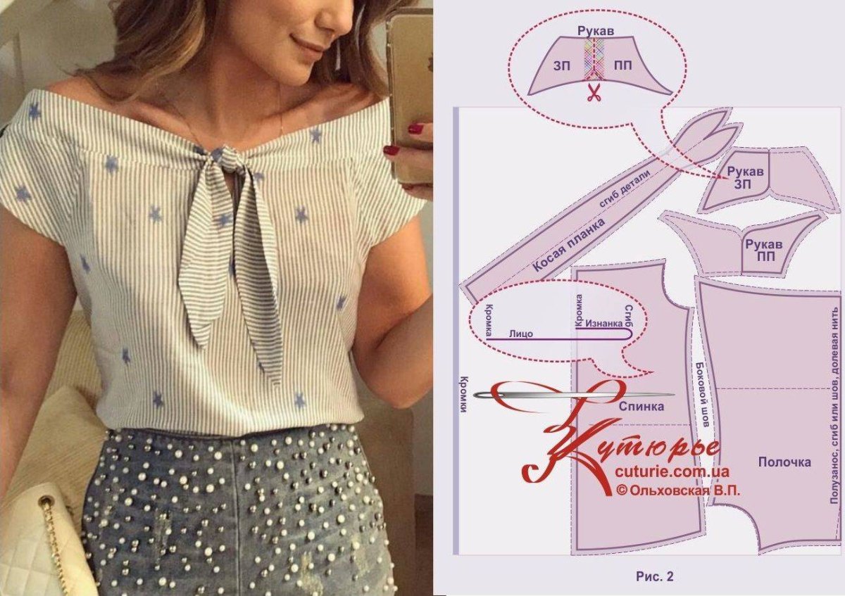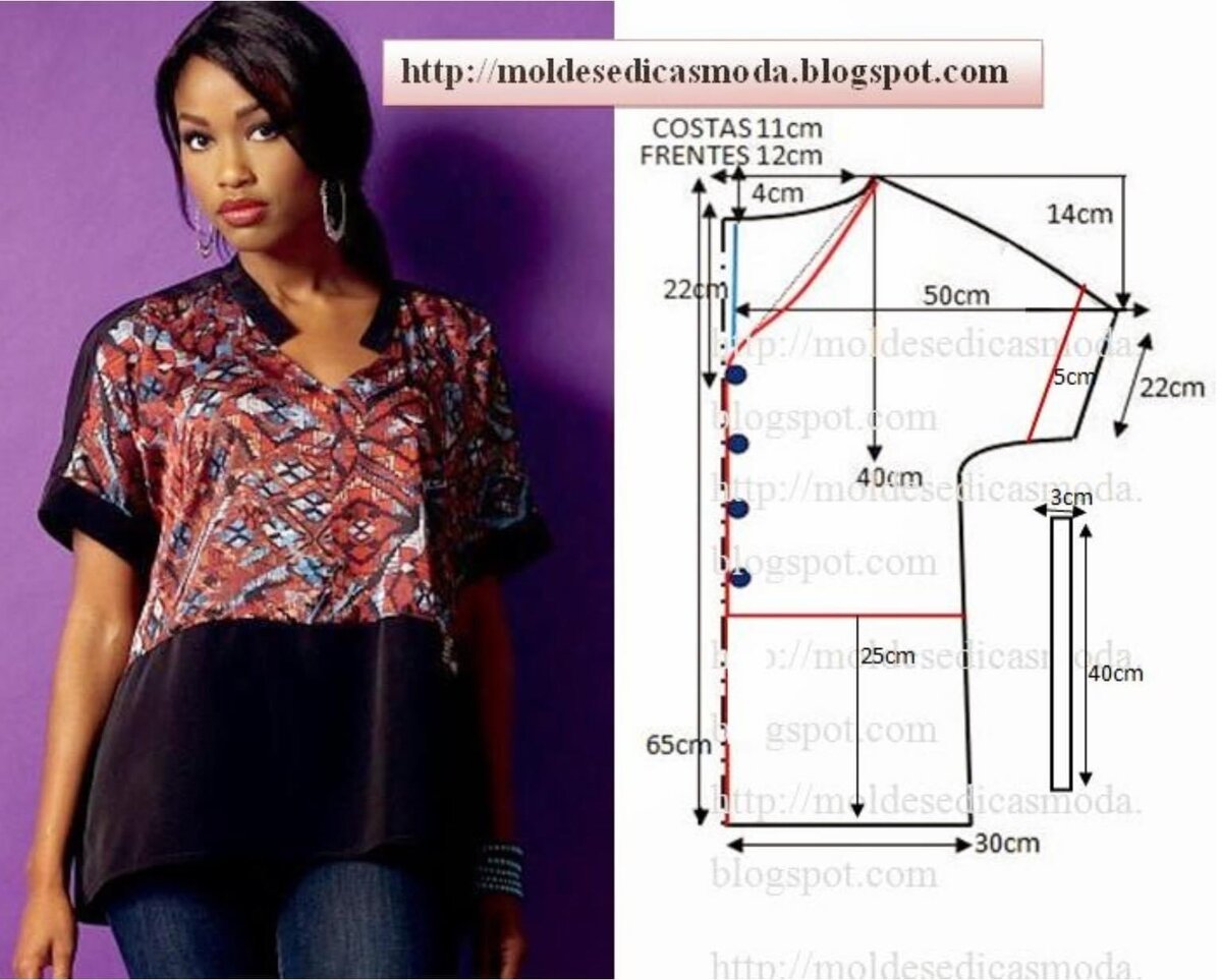Выкройка блузы с цельнокроеным рукавом 48 размера
